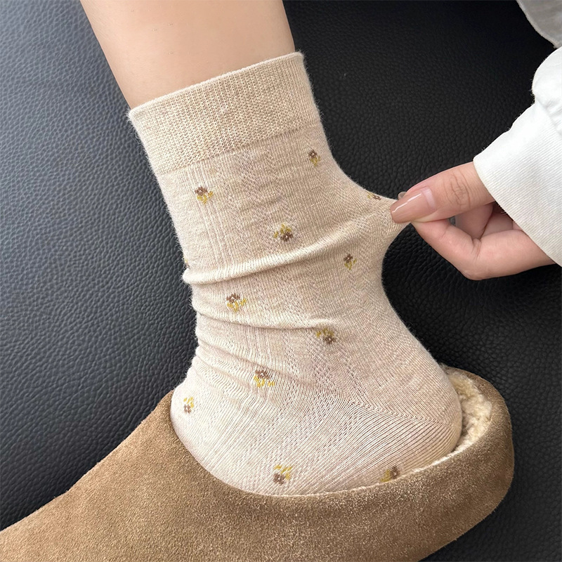 靴下 レディース 秋冬 ミドル丈ソックス レディース メイラード レトロ 2025年新作 人気商品 卸売 樹吉省原産工場