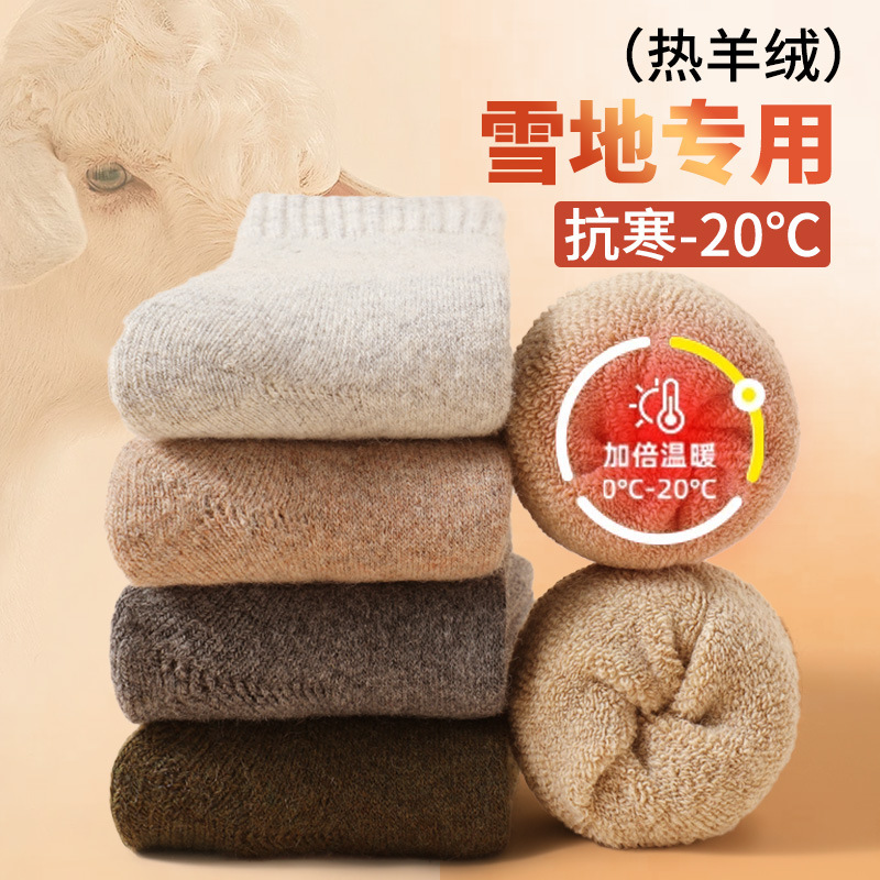 美利奴羊毛袜子男士秋冬季中长筒棉袜加厚加绒保暖防臭抗起球诸暨
