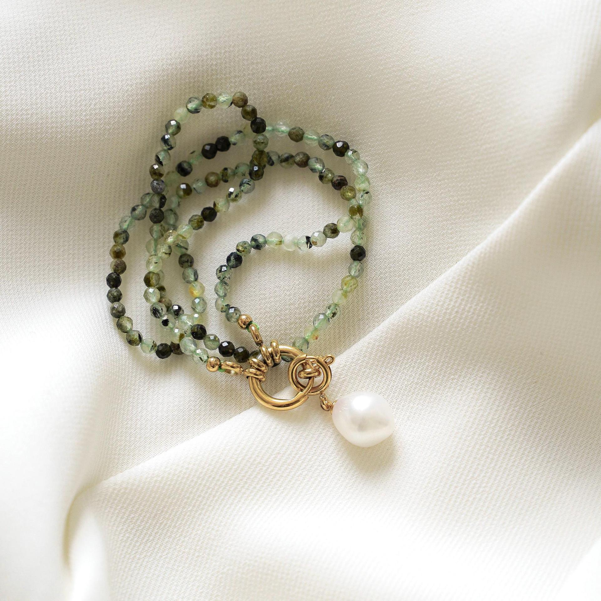 简约高级感串珠项链彩色珠子复古百搭颈链珍珠吊坠手工项链