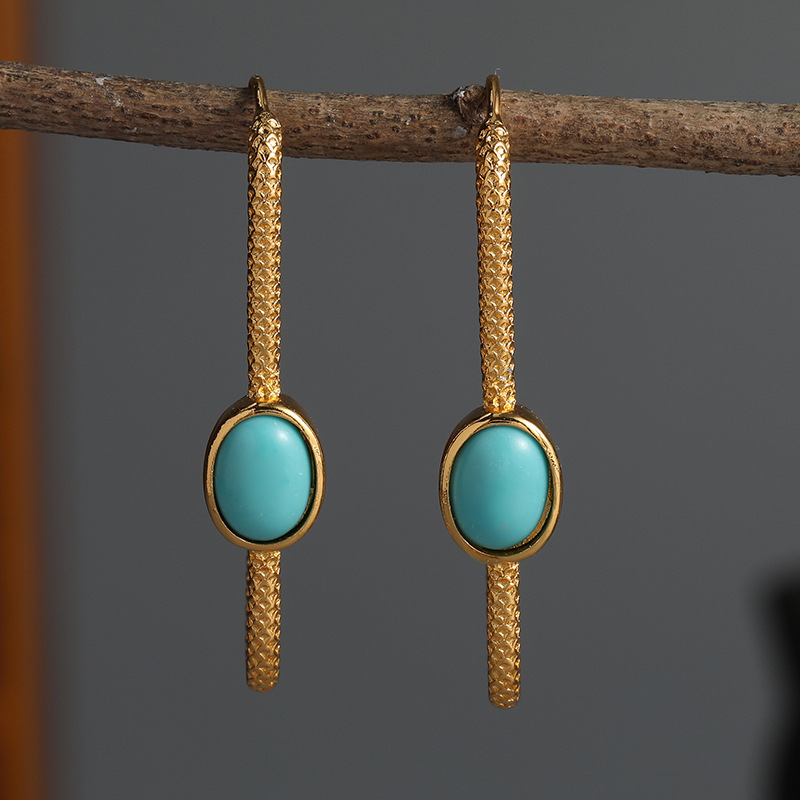 クロスボーダーTemu热い贩売レトロ松石金属イヤリングファッションレディース个性耳饰りジュエリーギフト卸売