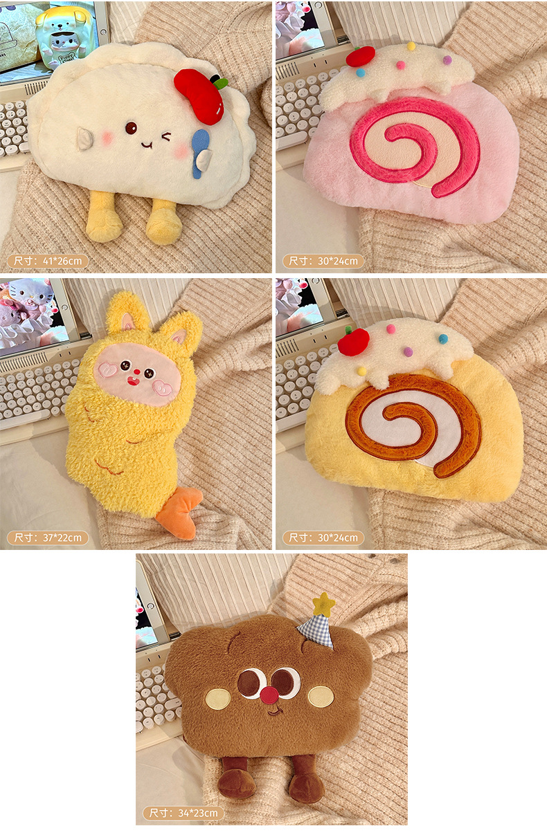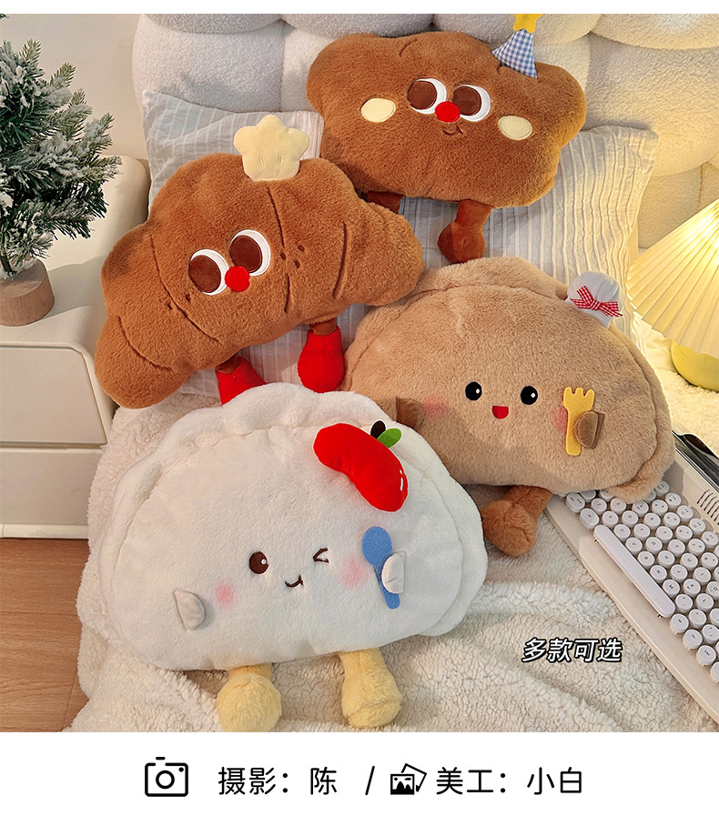 颜色 棕色饺子,白色饺子,棕色面包,棕色牛角包,粉色奶油卷,黄色奶油卷,可爱玩偶