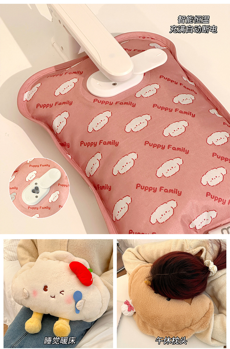 创意毛绒热水袋刺绣小狗2025新款暖水袋充电自动断电厂家直销批发