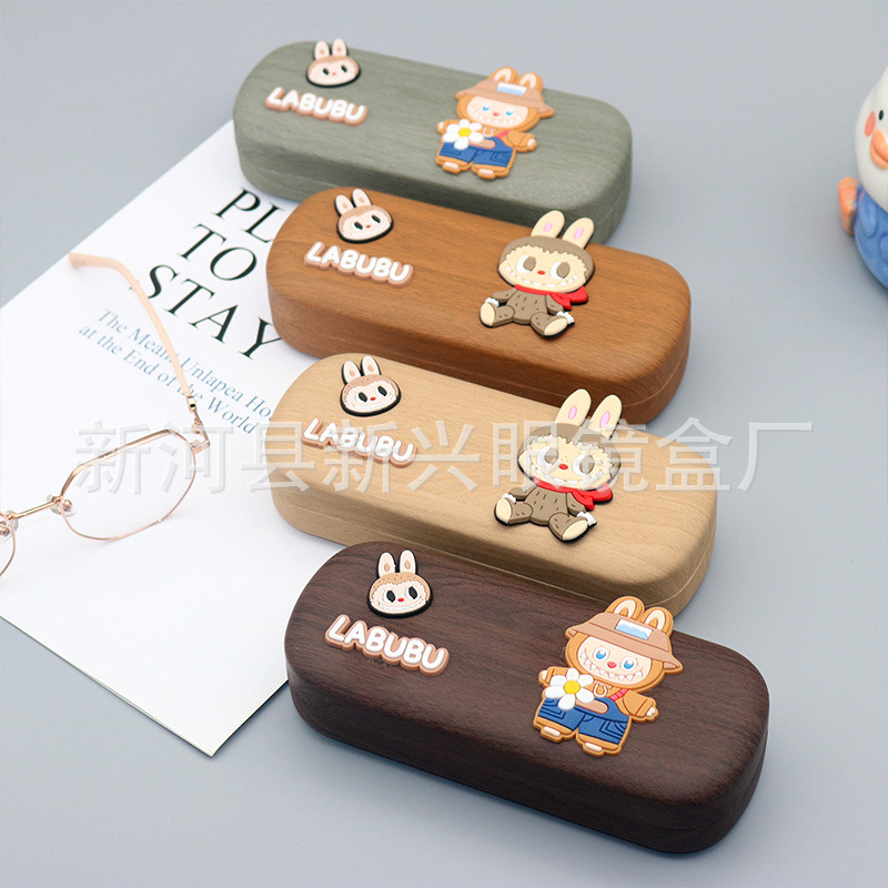 贴卡通可爱框架近视眼镜盒学生便携防压防摔仿木纹墨镜太阳镜盒