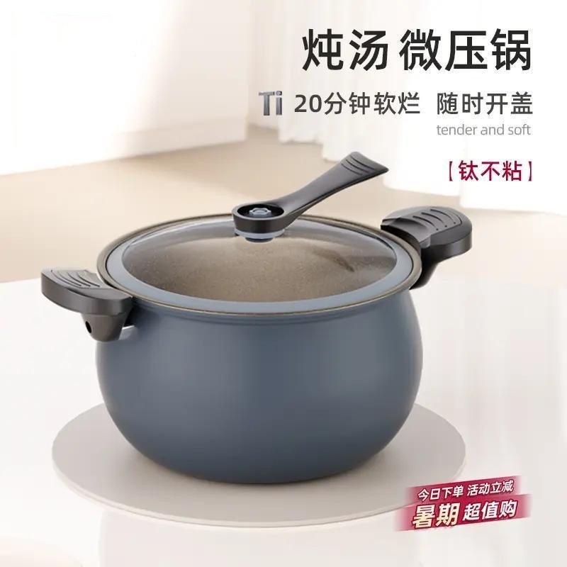 辣小娘同款微压锅钛不沾煮粥加厚双耳压力锅家用电磁炉微压炖煮锅