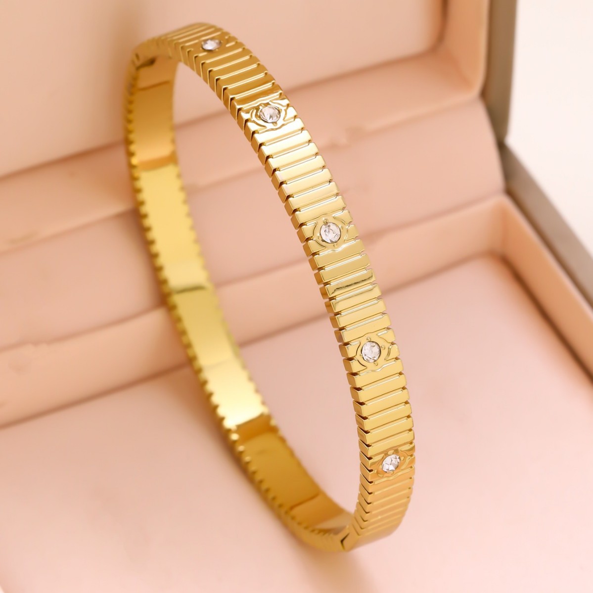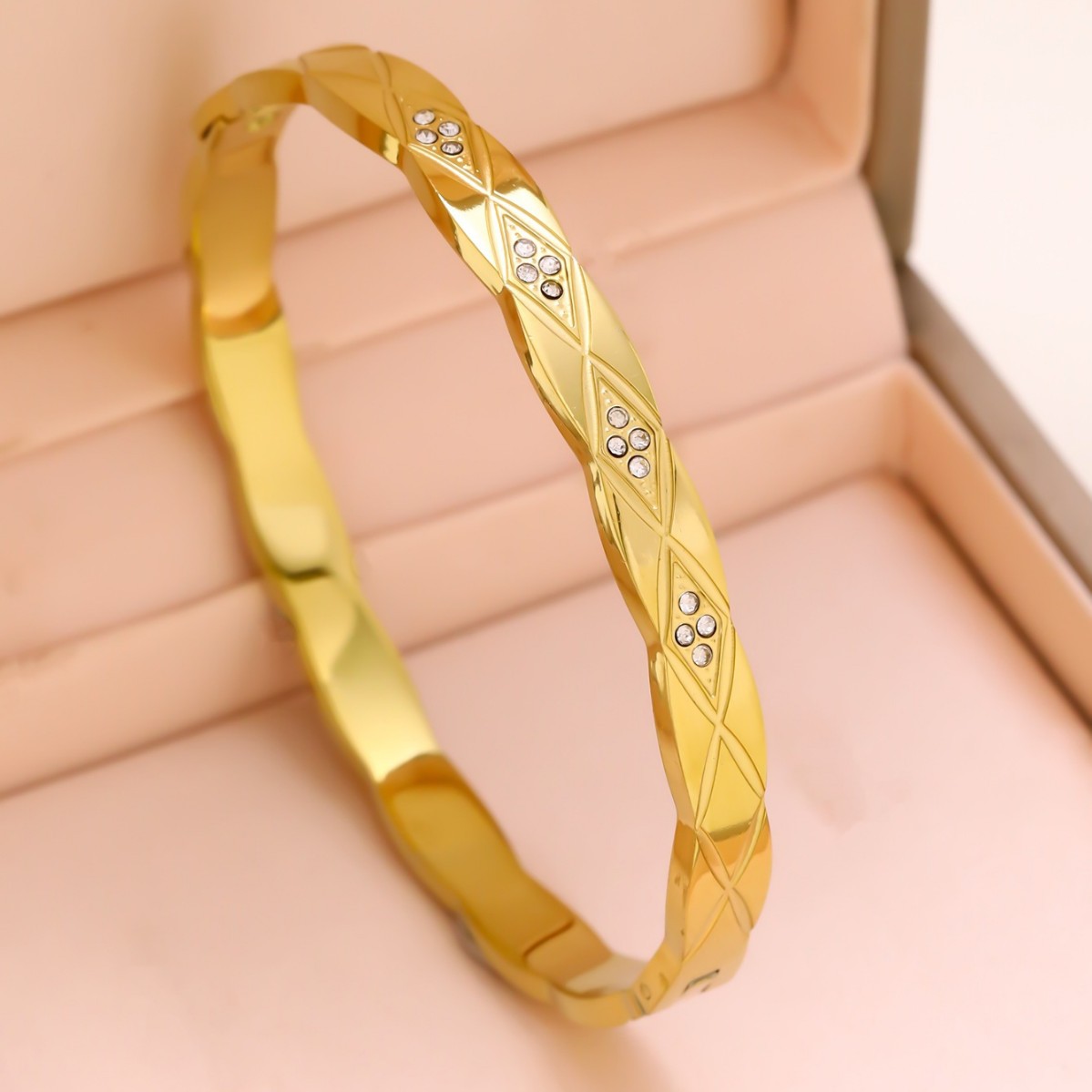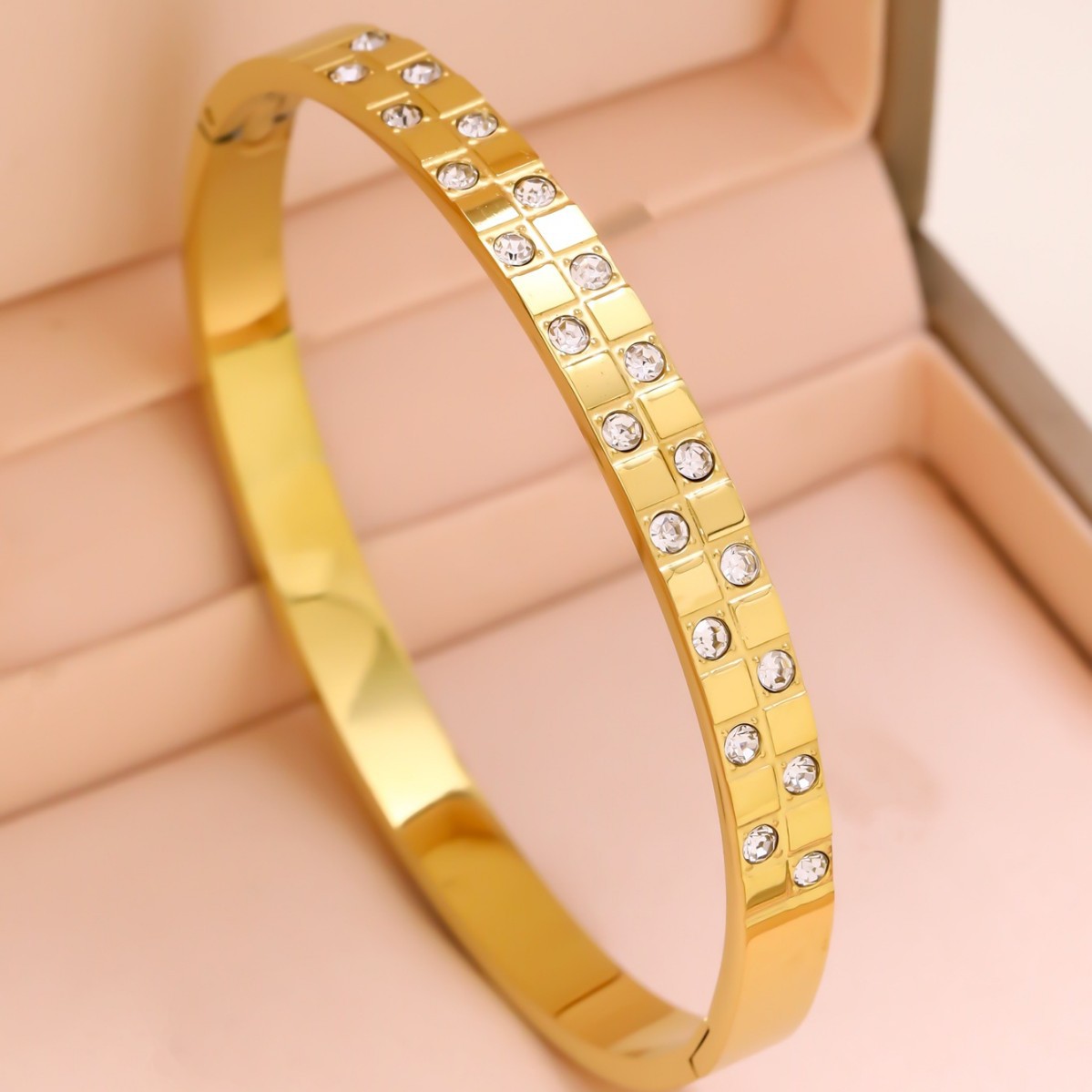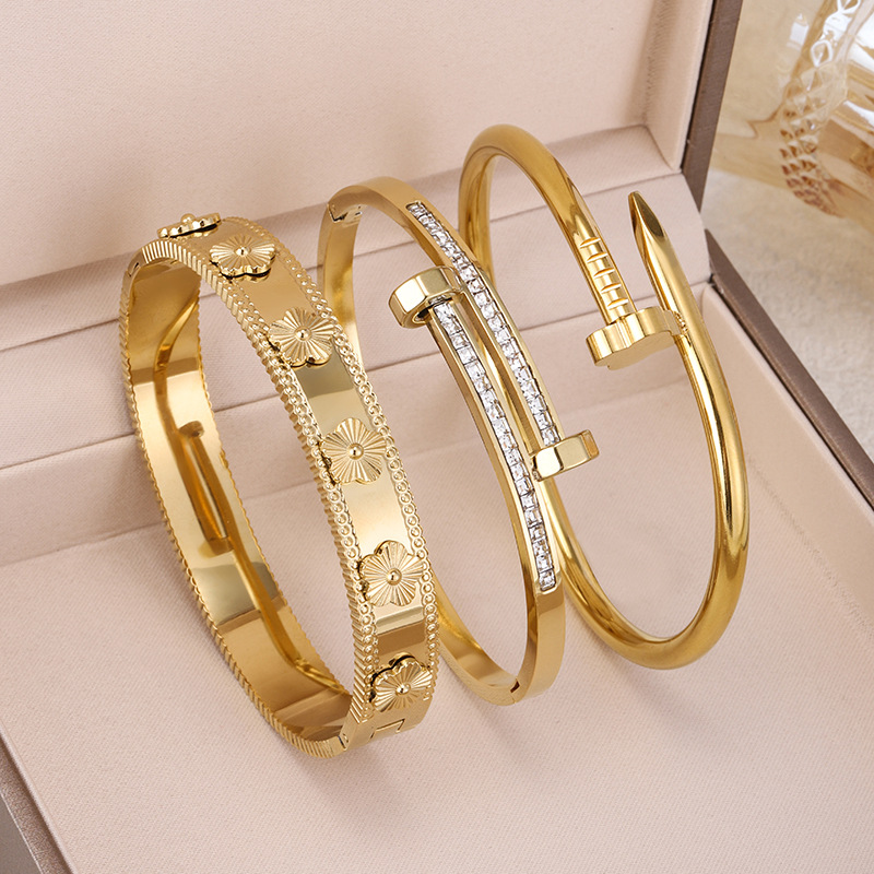跨境锆石镶钻钛钢手镯18K金不掉色小众设计时尚轻奢手环饰品批发