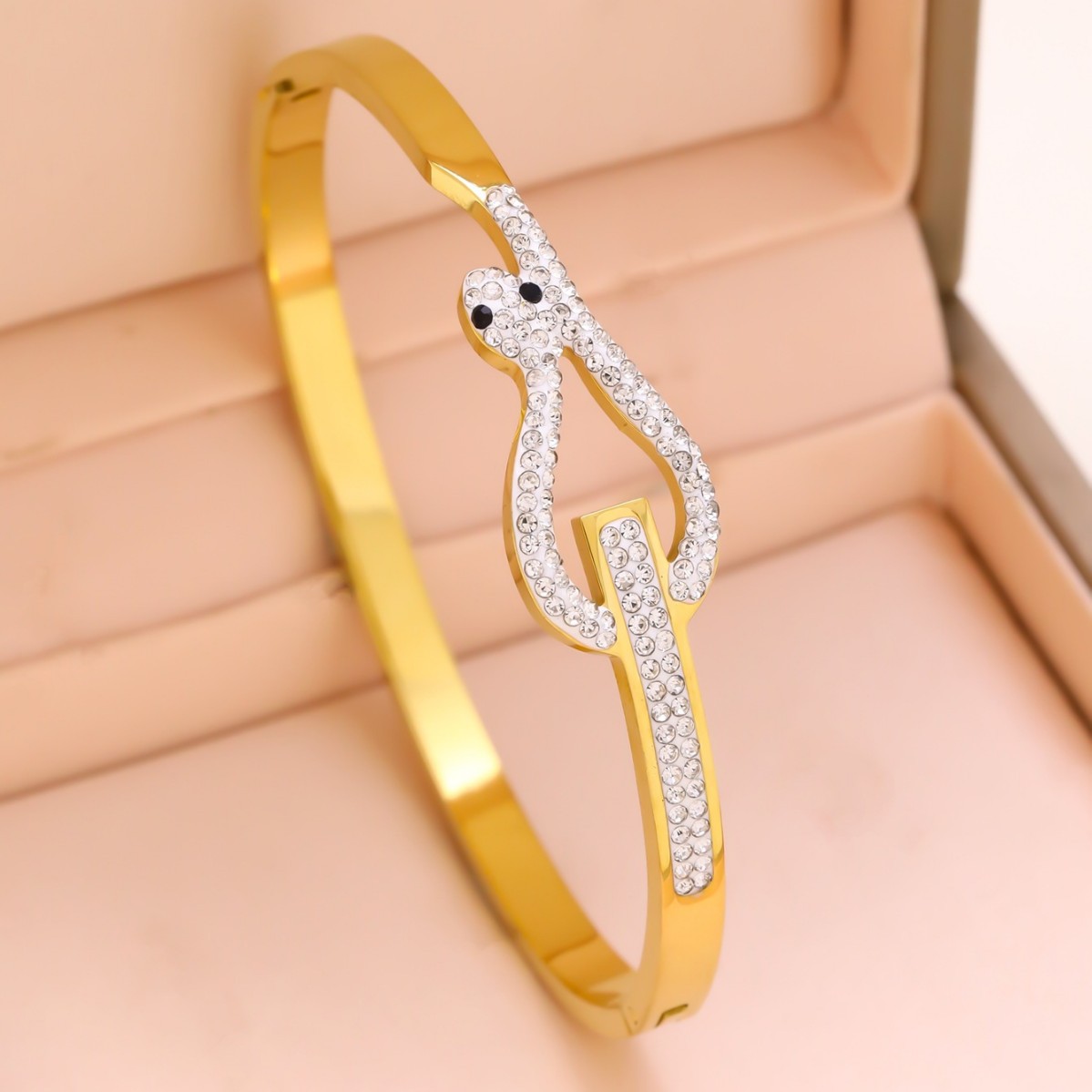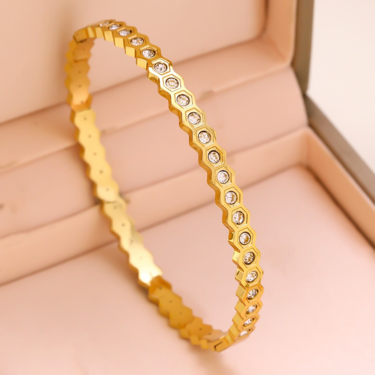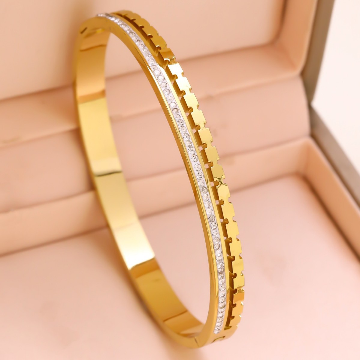 跨境锆石镶钻钛钢手镯18K金不掉色小众设计时尚轻奢手环饰品批发