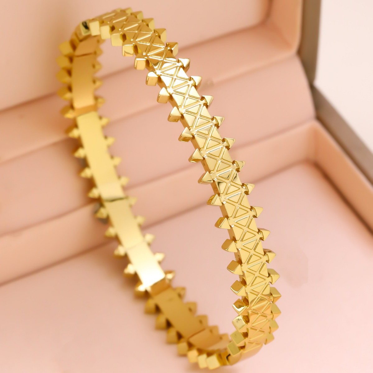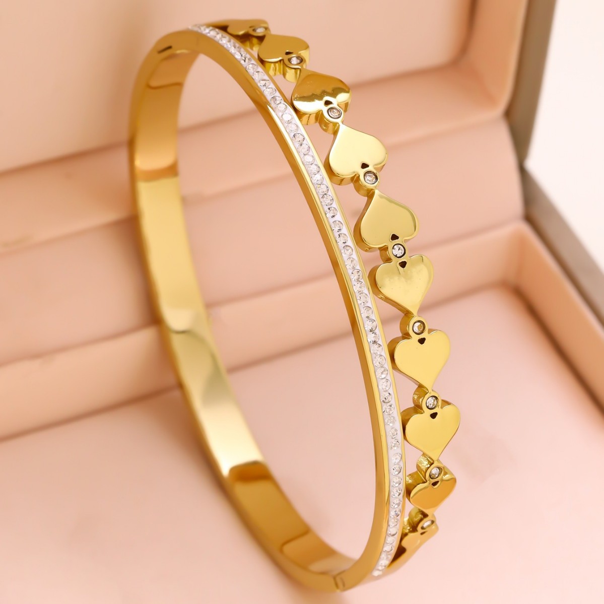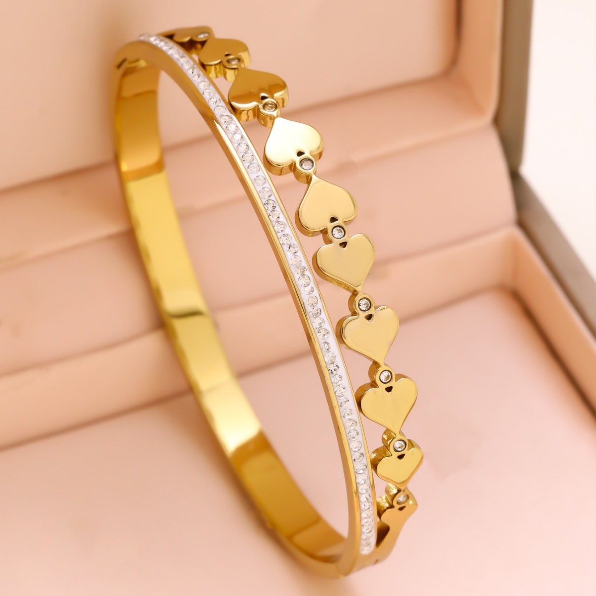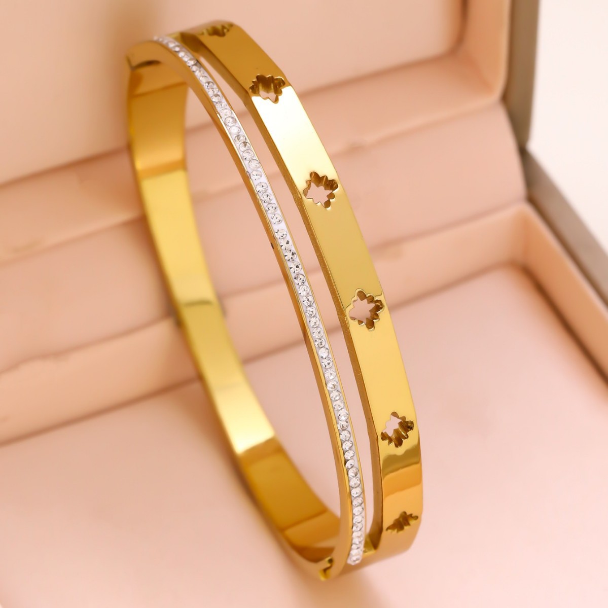 跨境锆石镶钻钛钢手镯18K金不掉色小众设计时尚轻奢手环饰品批发