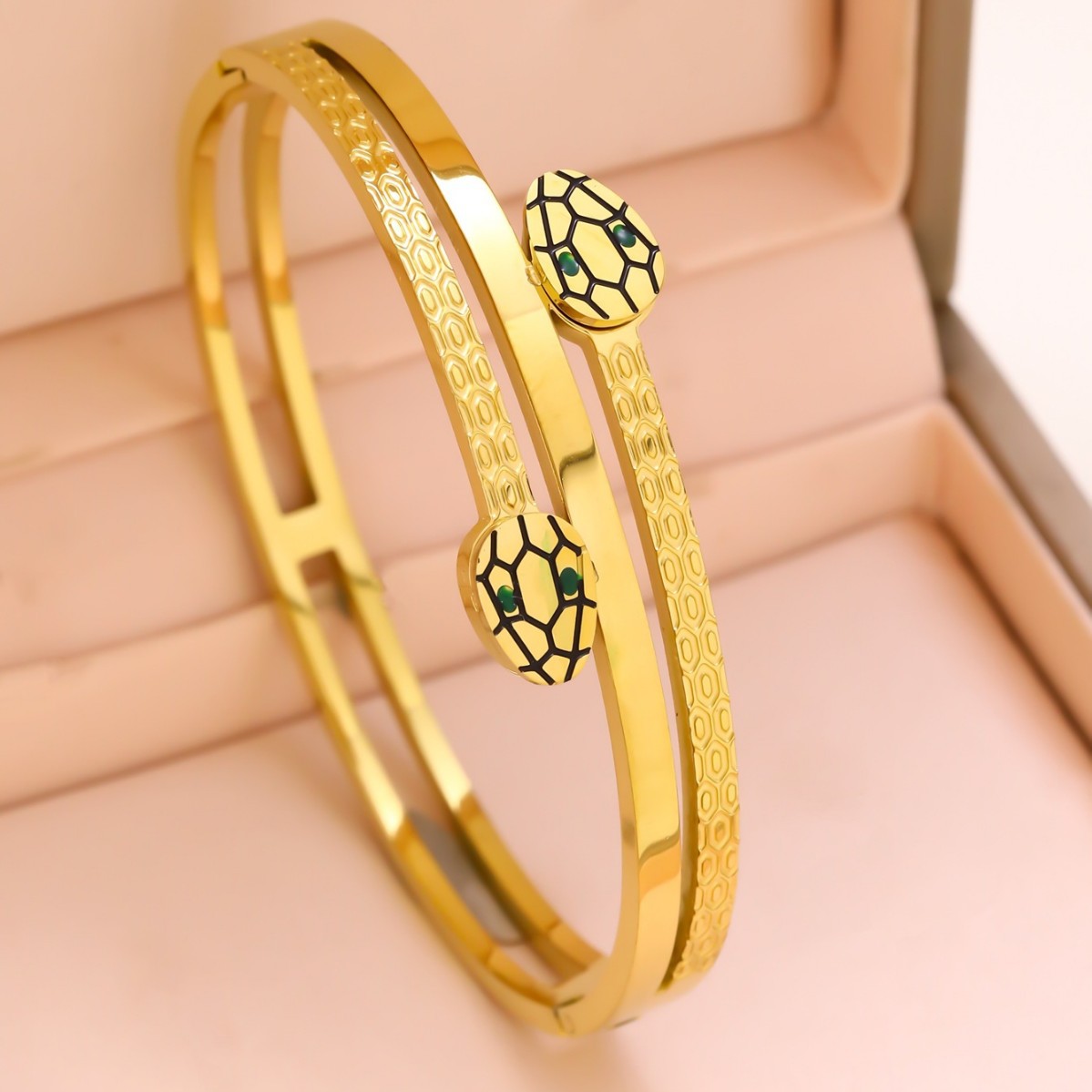 跨境热卖钛钢手镯亚马逊速卖通欧美时尚镀18K金不锈钢不掉色饰品