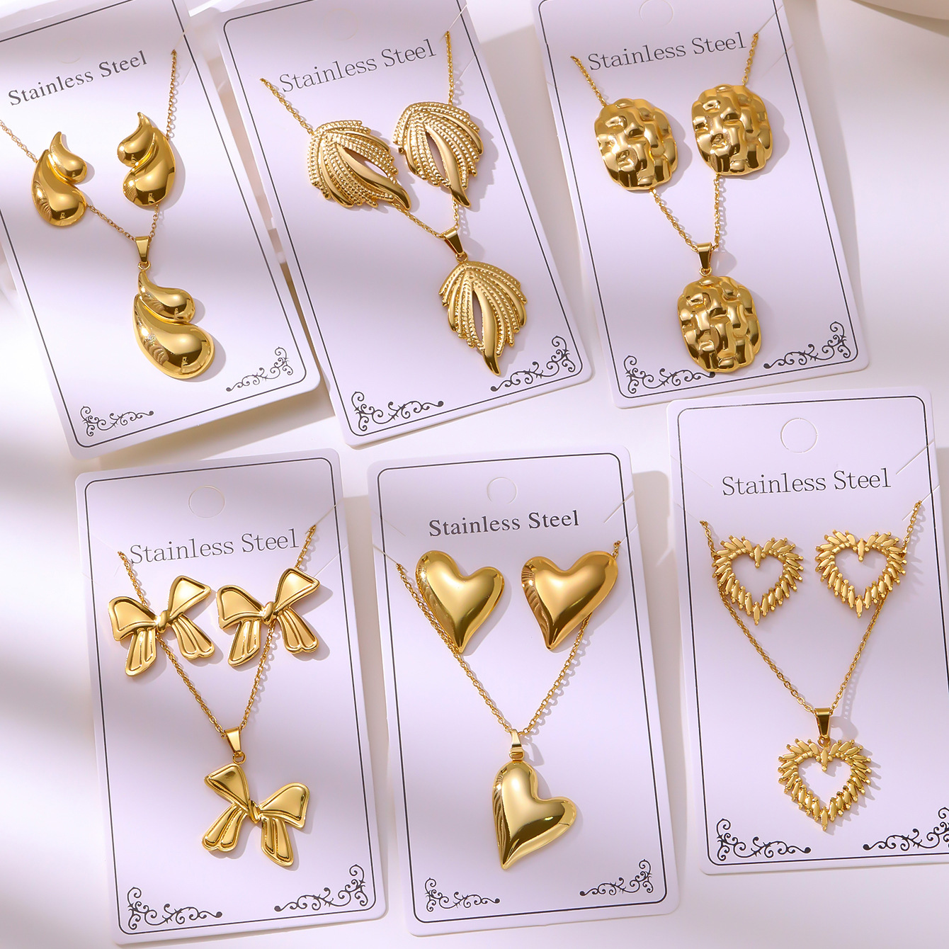 新款油压304不锈钢镀金套装复古耳钉项链不掉色饰品批发厂家直供