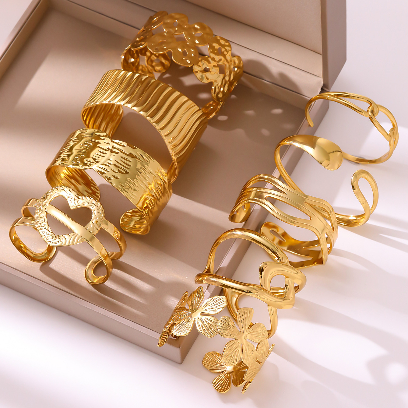 跨境个性夸张304不锈钢开口手镯简约时尚高级感宽版手饰创意批发