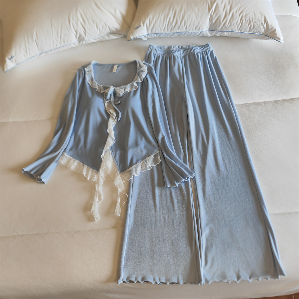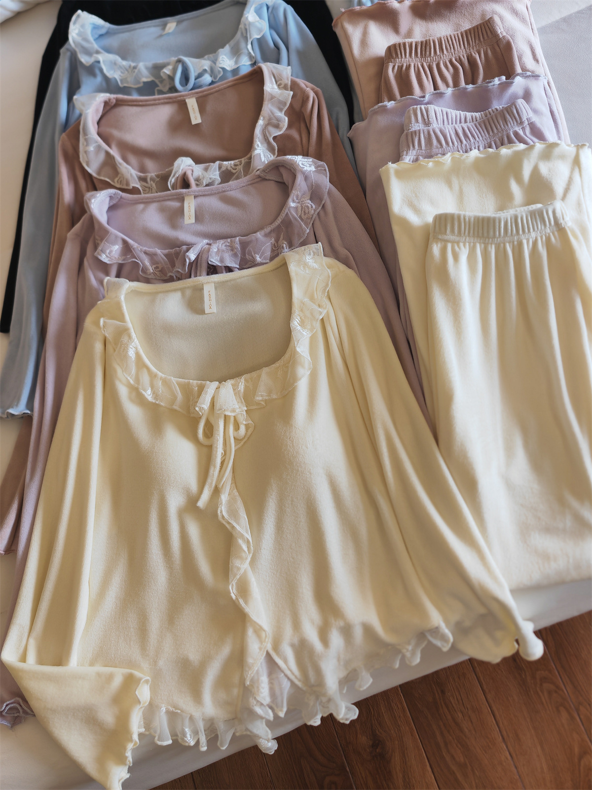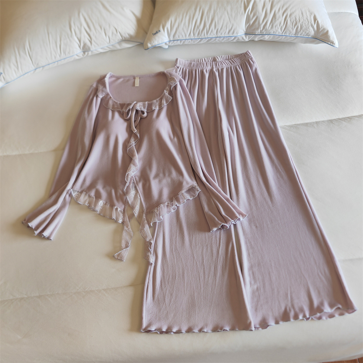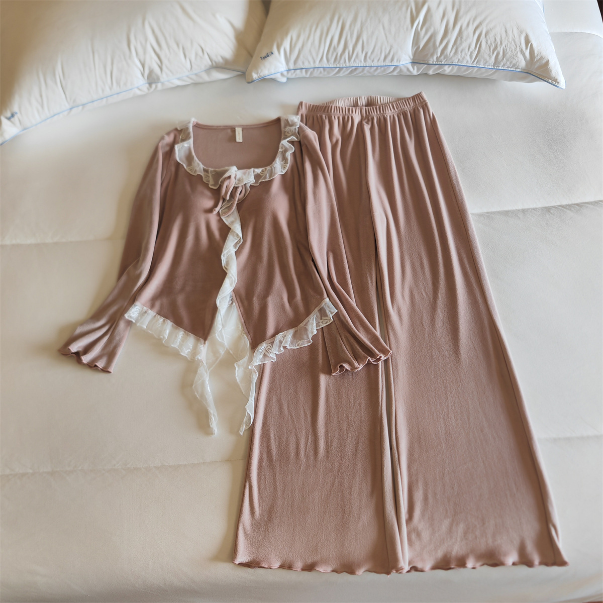 モーダルパジャマレディース春秋胸当て付き長袖甘美純欲風レース可アウターホームウェア