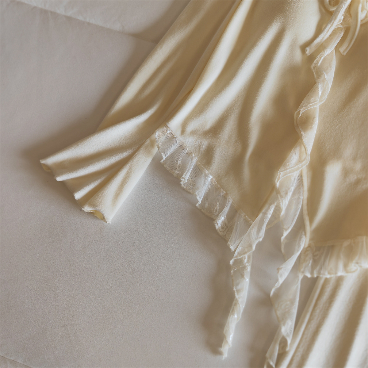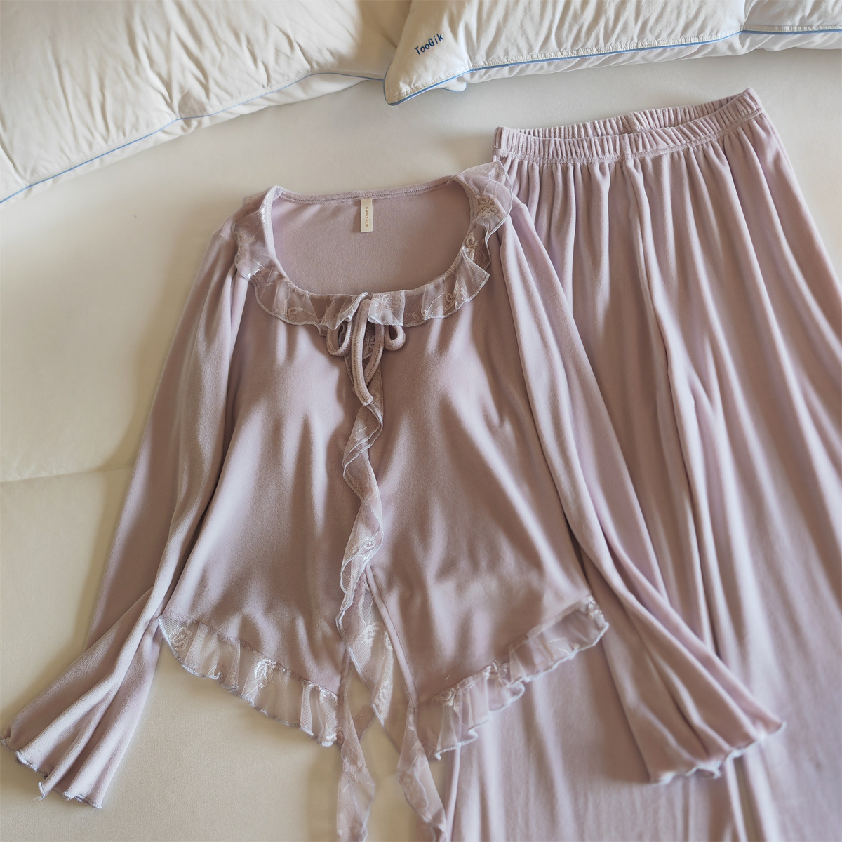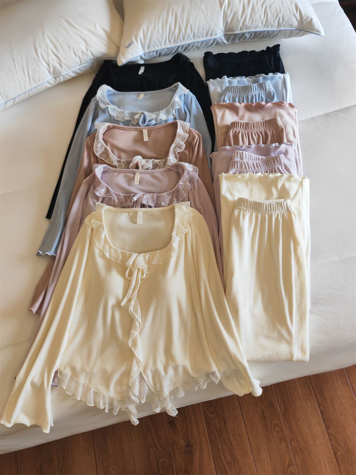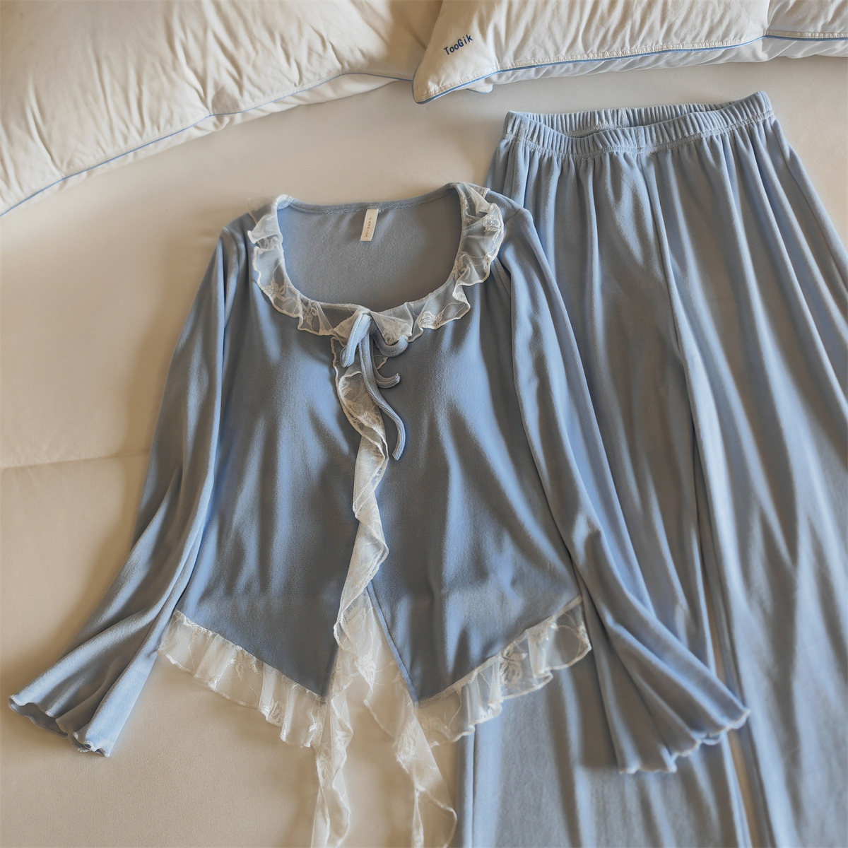 モーダルパジャマレディース春秋胸当て付き長袖甘美純欲風レース可アウターホームウェア