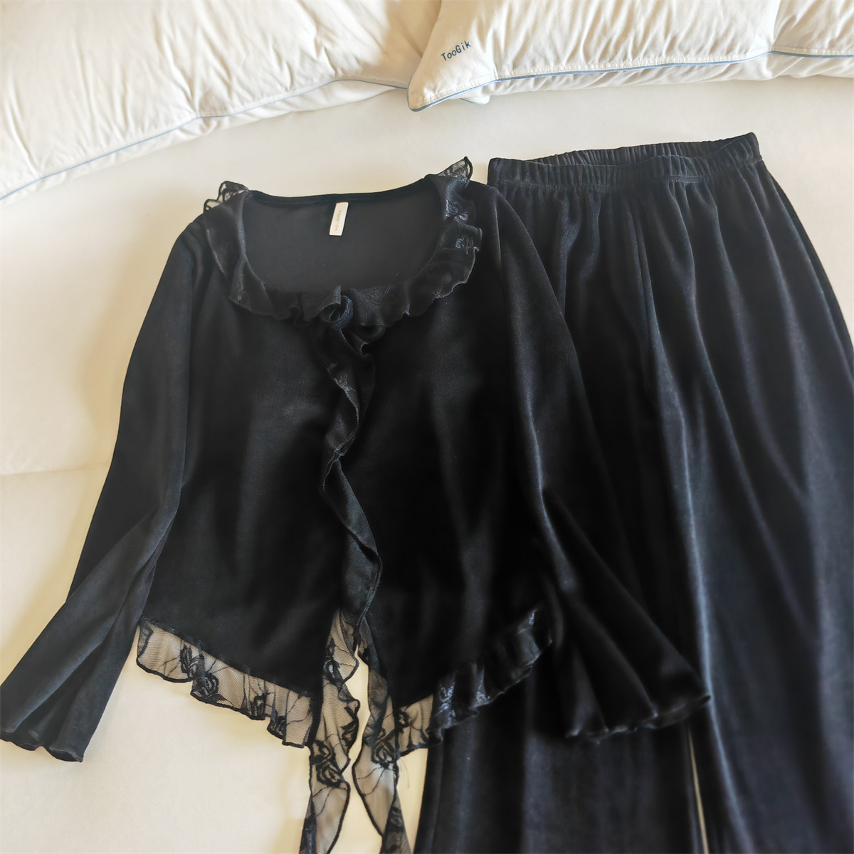 島風ベルベットパジャマ レディース 春秋冬 プリンセス風 レース付き 長袖 長ズボン 肌に優しい 暖かいベルベット ホームウェア 上下セット