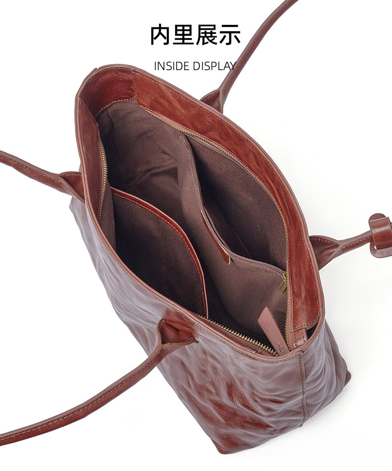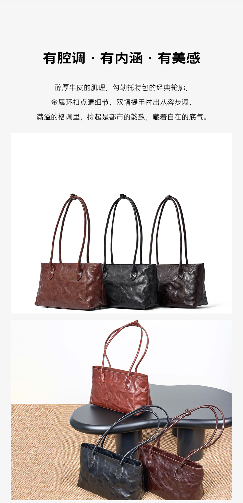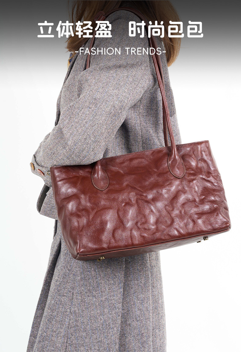 高级感复古女包全树膏植鞣牛皮托特包手提包女跨境真皮单肩斜挎包