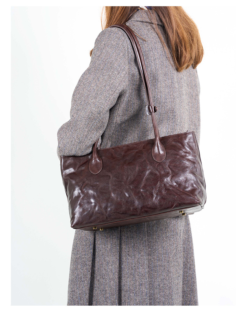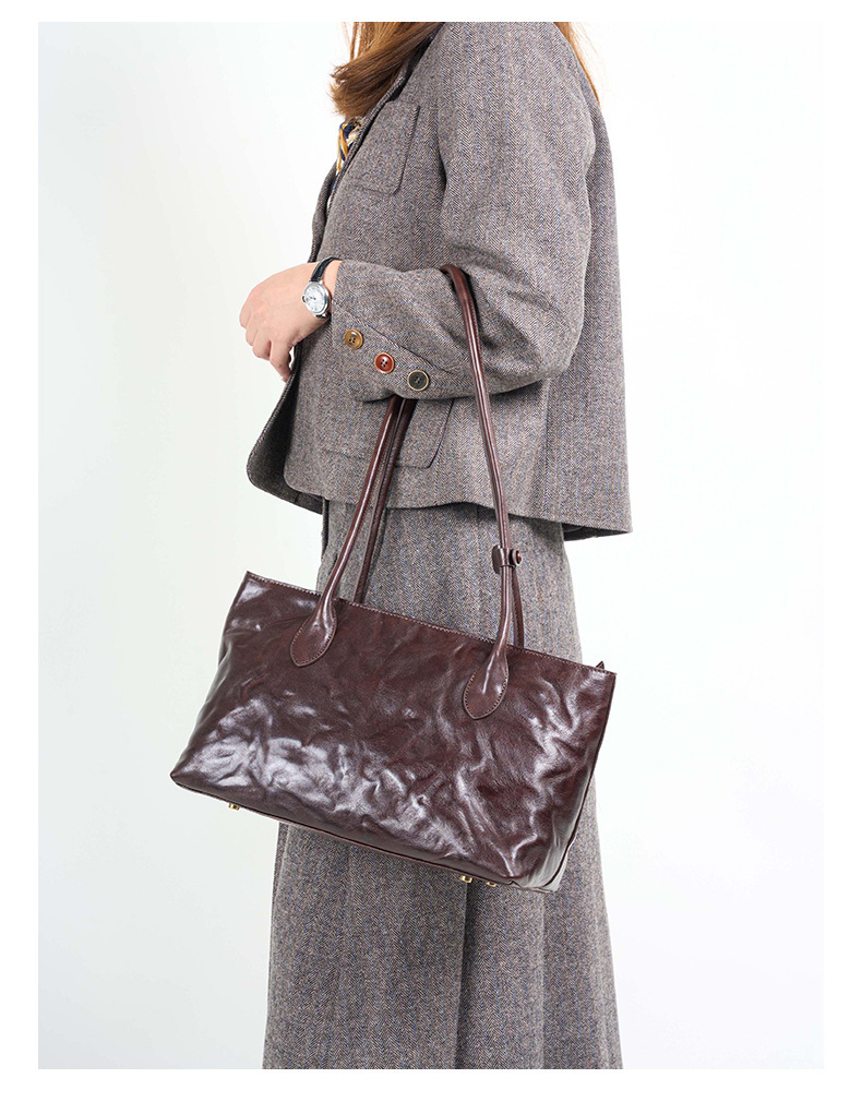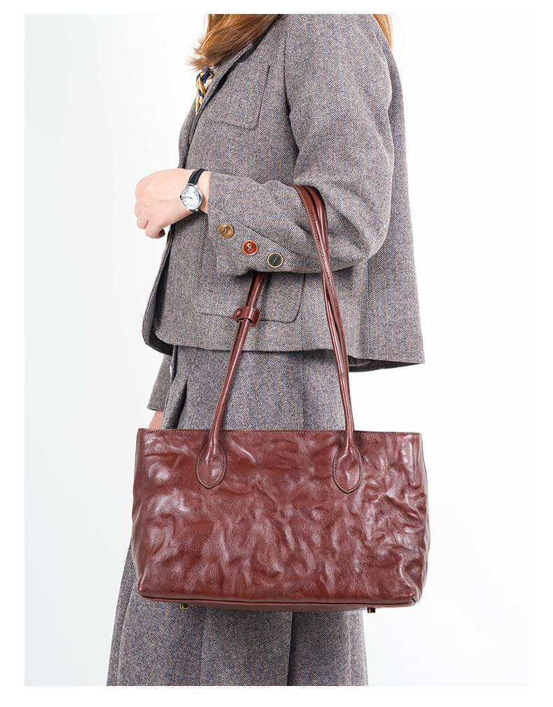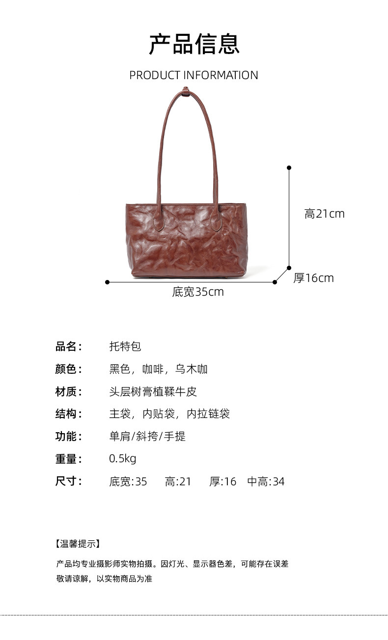 高级感复古女包全树膏植鞣牛皮托特包手提包女跨境真皮单肩斜挎包