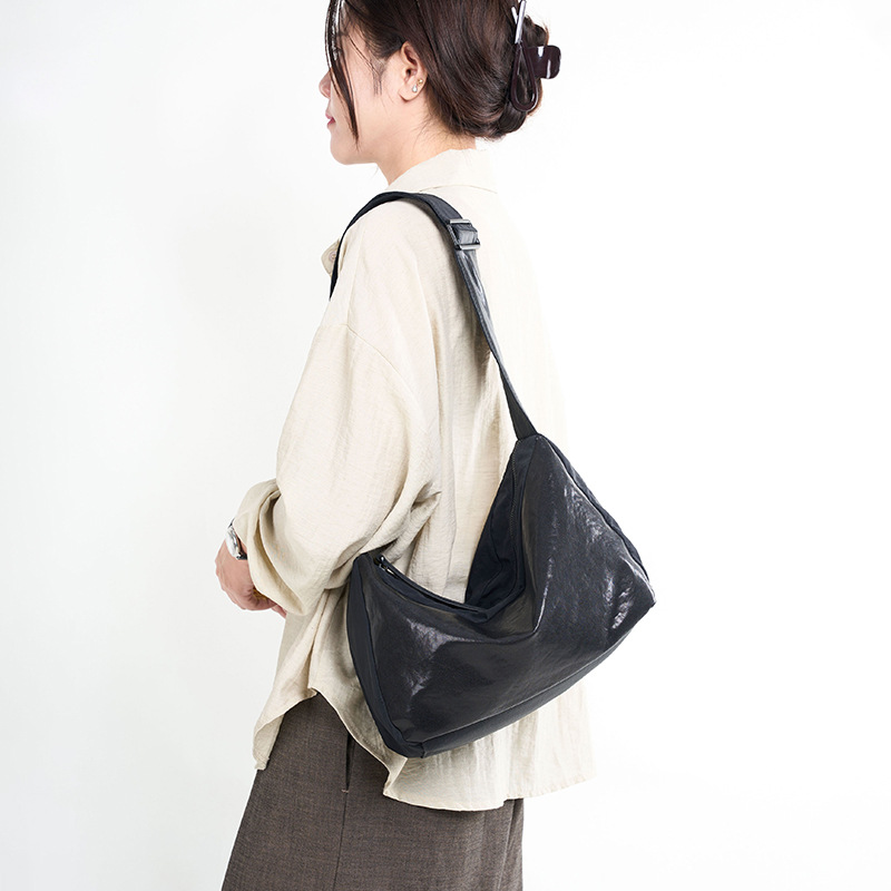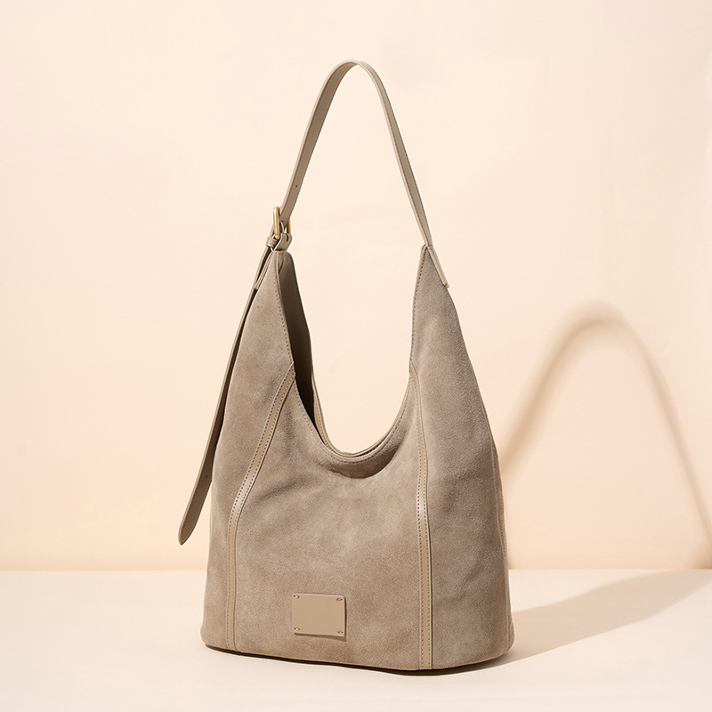 时尚款头层水晶胎牛皮配防水布腋下hobo包跨境百搭新款单肩斜挎包