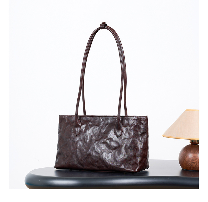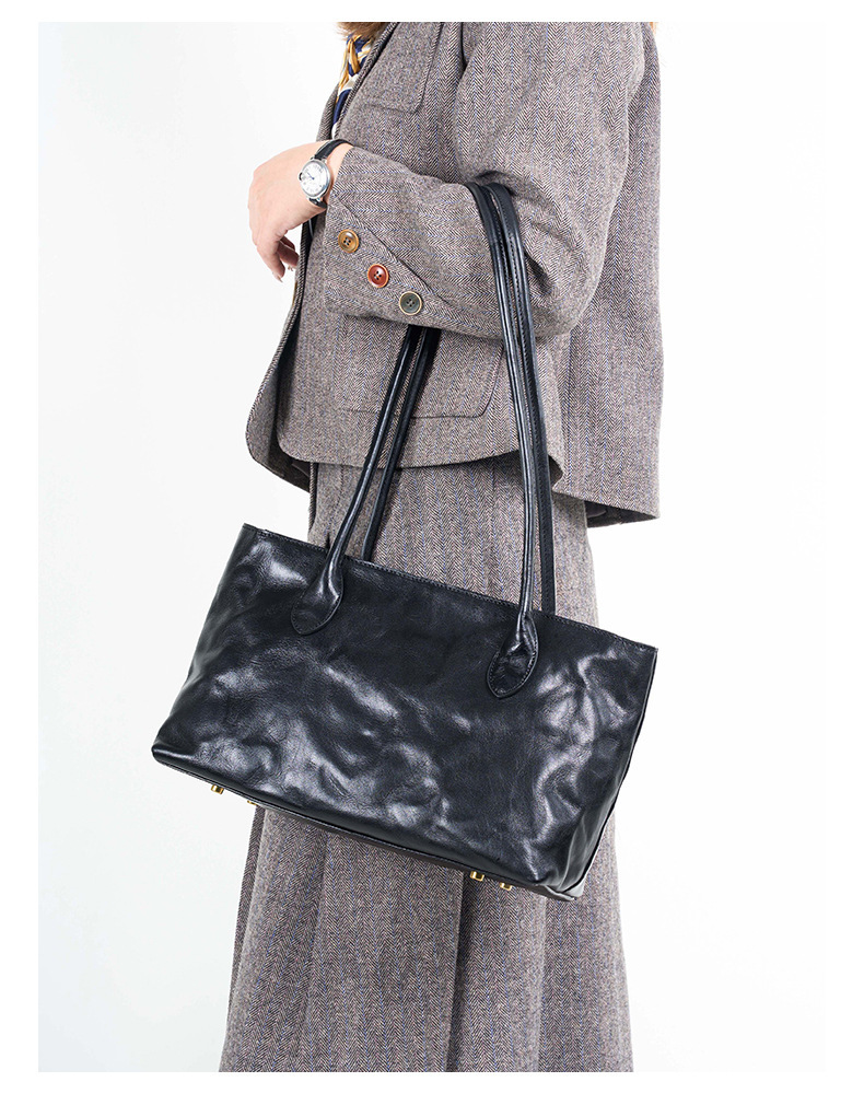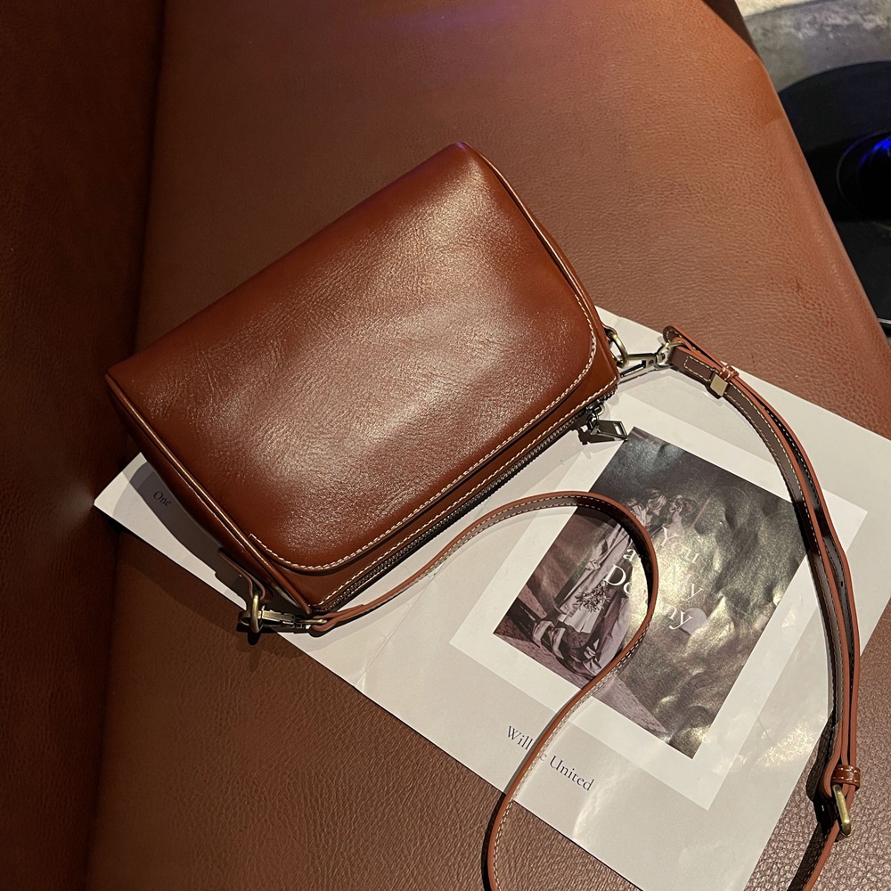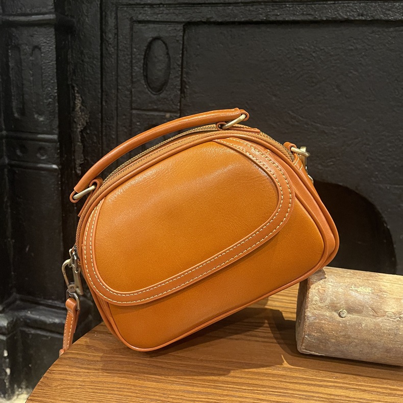 高级感本革女性カバンおしゃれレトロシェルバッグ新作春夏オイルワックス牛革シングルショルダーバッグレディース6010