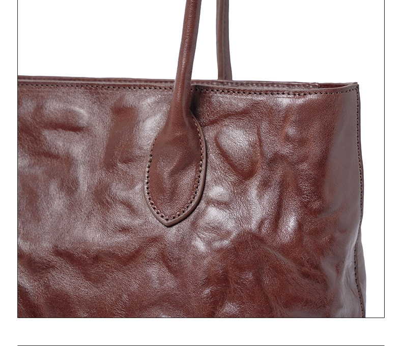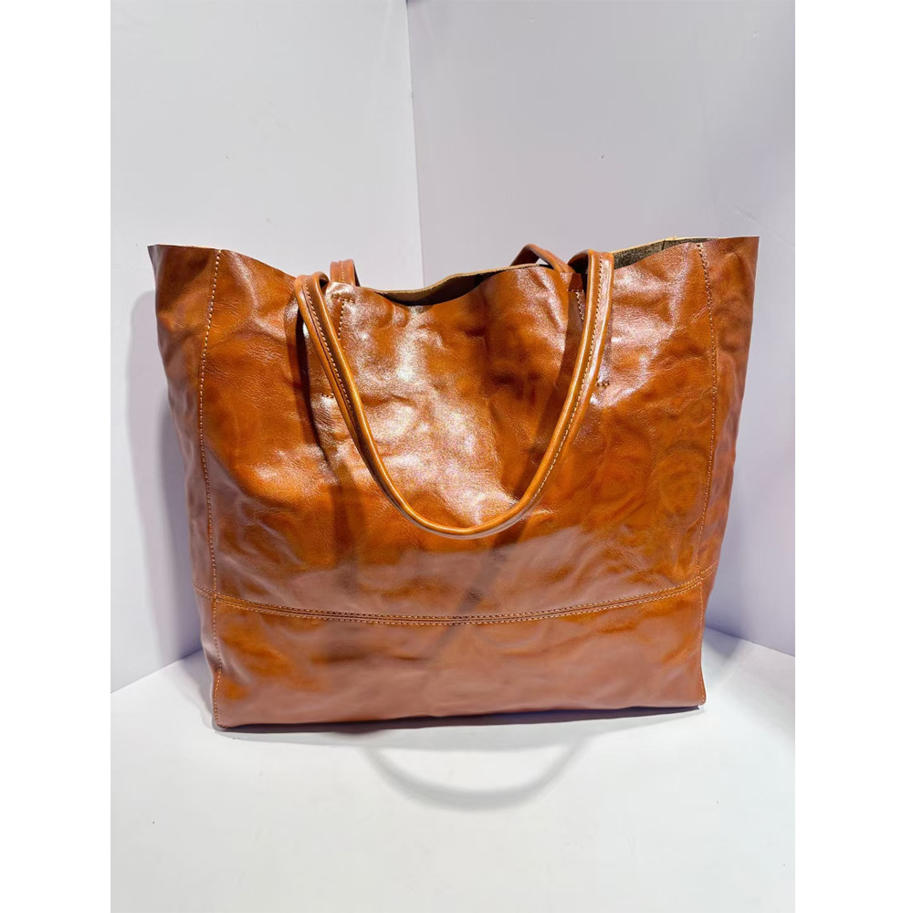 レトロ本革ビッグバッグレディース新作トートバッグクロスボーダートップ層植なめし牛革大容量ショルダーバッグ75031