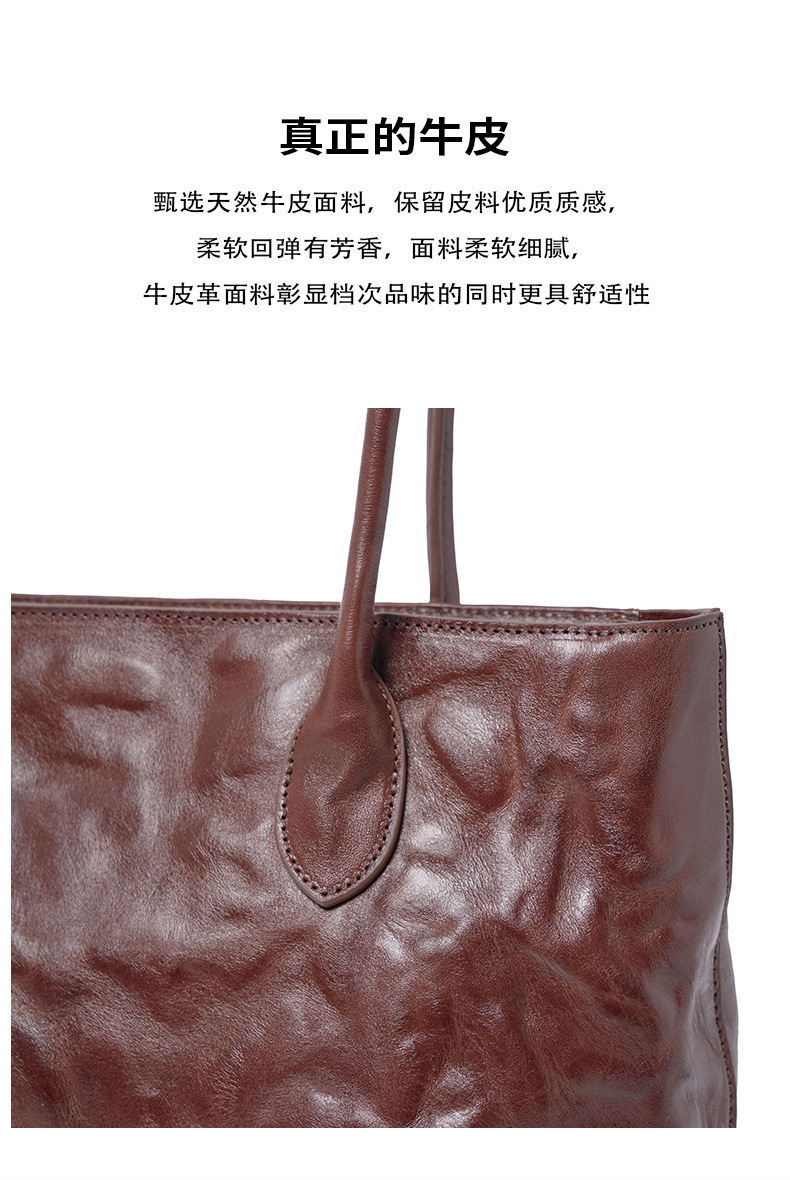 手提大容量真皮托特包女头层水晶植鞣牛皮新款松弛感通勤单肩女包