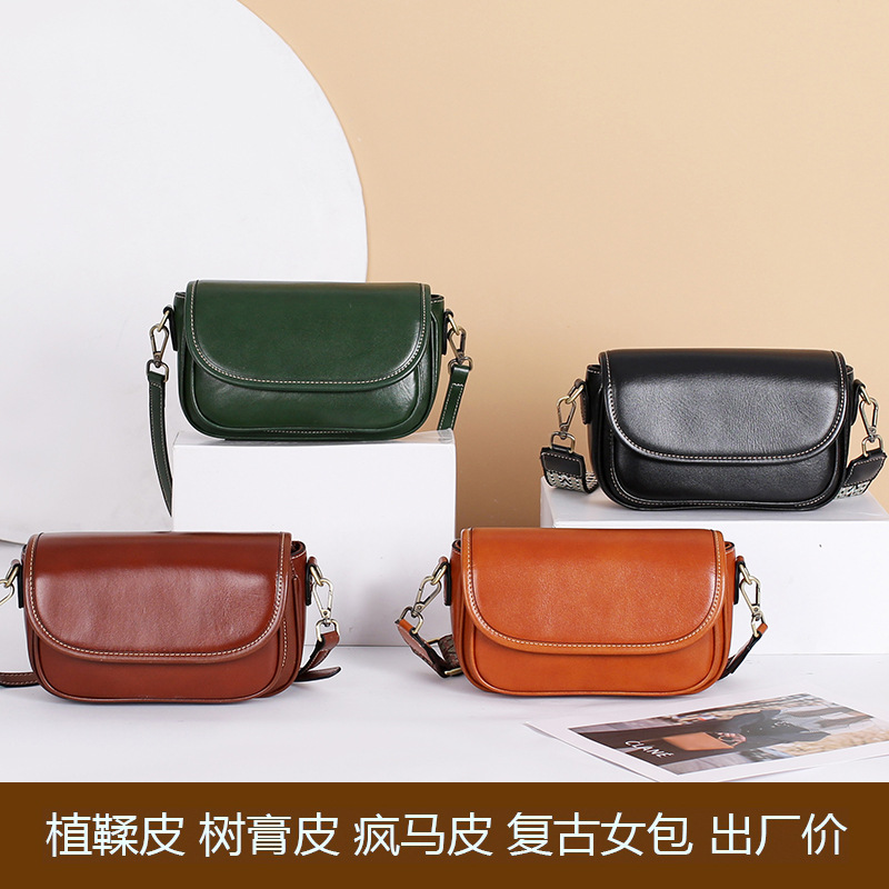 真皮女包跨境新款通勤单肩包时尚复古邮差包树膏植鞣牛皮斜挎包女