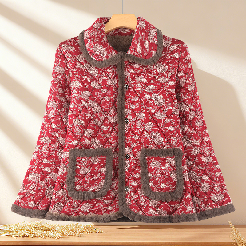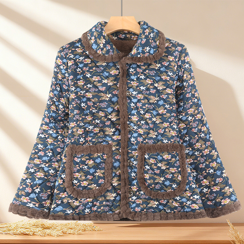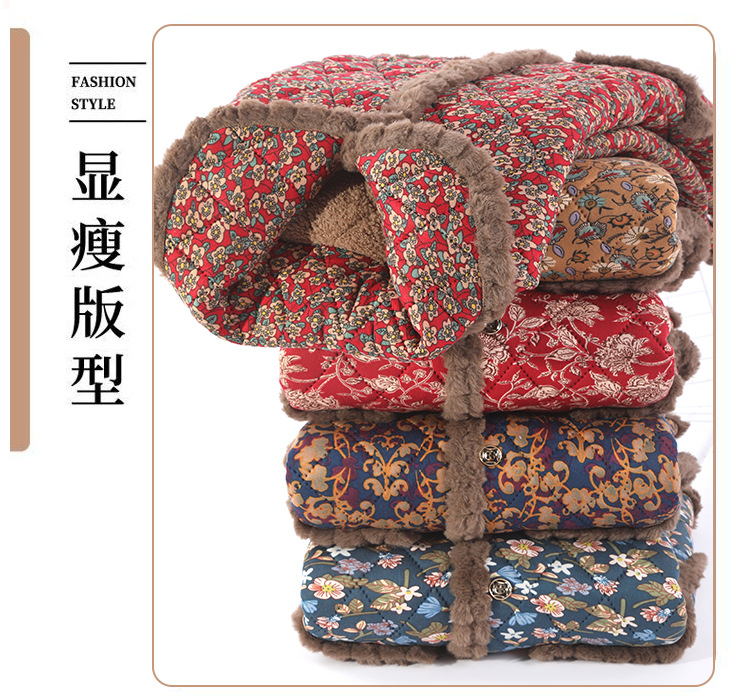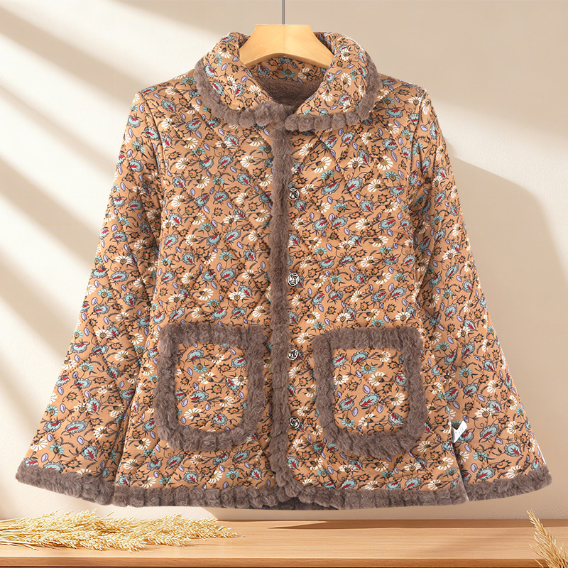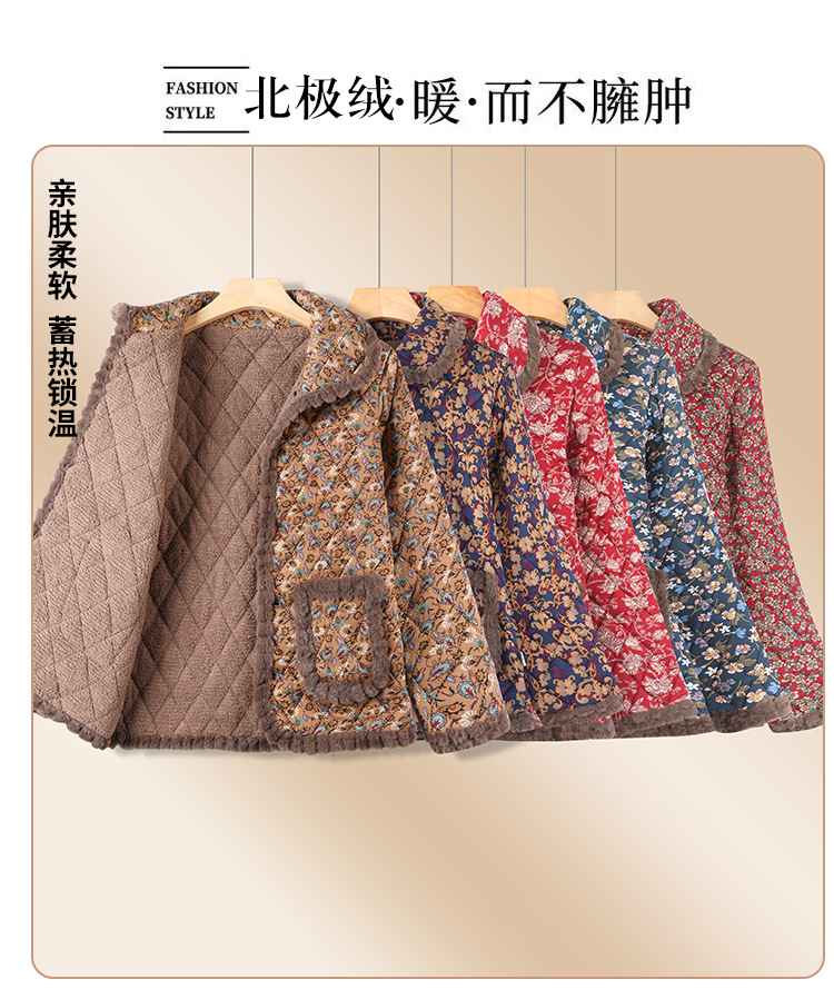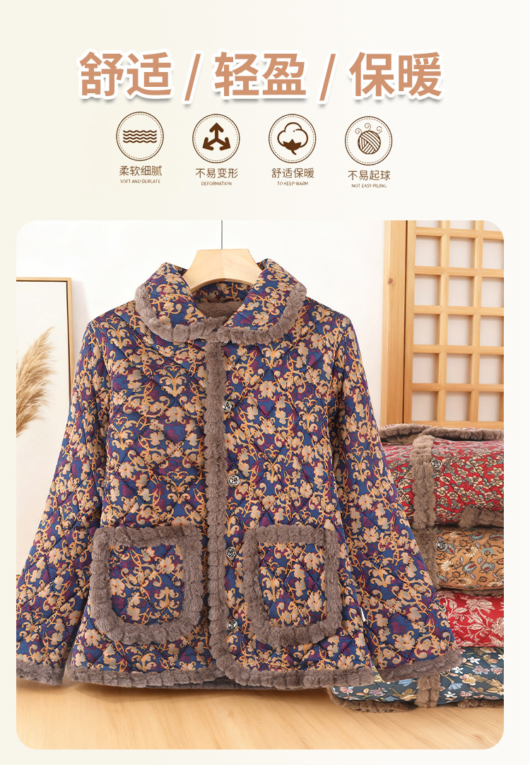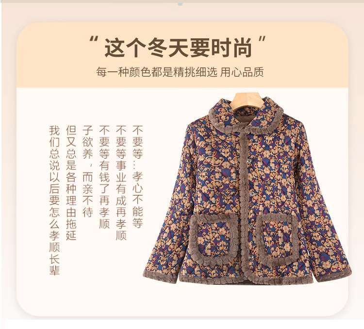 秋冬季时尚洋气棉袄女加绒保暖棉衣中老年人妈妈加厚外套2025新款