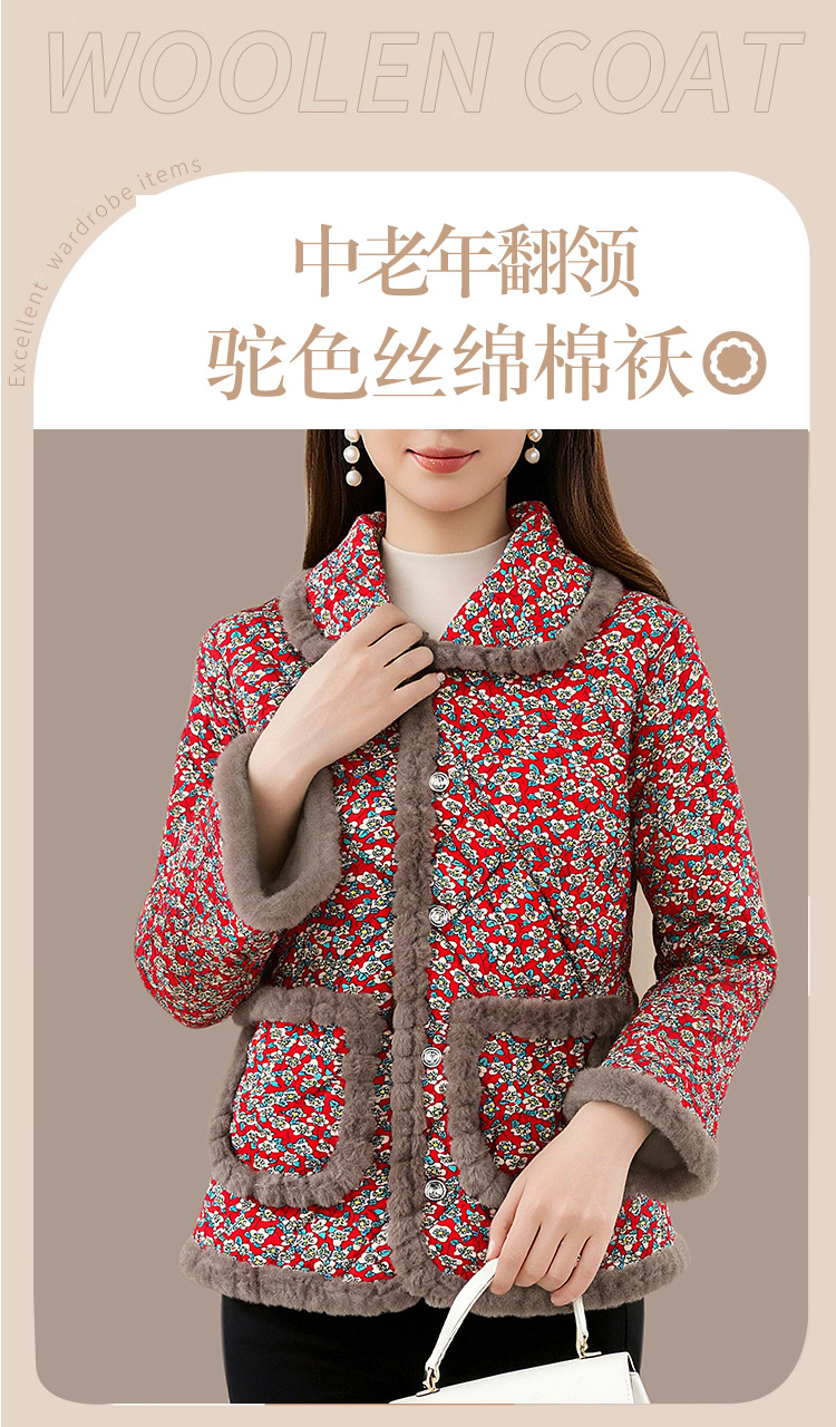 颜色 红底碎花-毛绒翻领-加厚款,酒红碎花-毛绒翻领-加厚款,卡其碎花-毛绒翻领-加厚款,蓝瓷碎花-毛绒翻领-加厚款,蓝紫碎花-毛绒翻领-加厚款