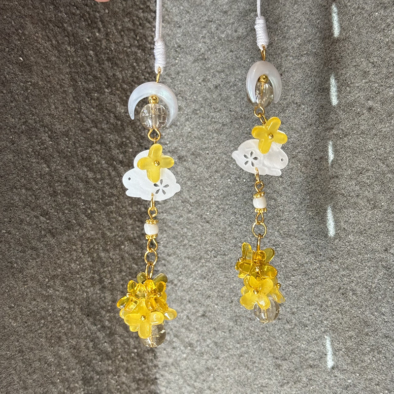 月亮玉桂兔琉璃桂花流苏吊坠精致小巧手机挂件挂绳包包挂饰礼物