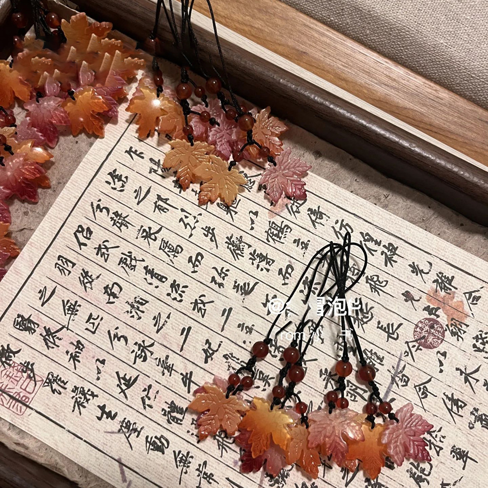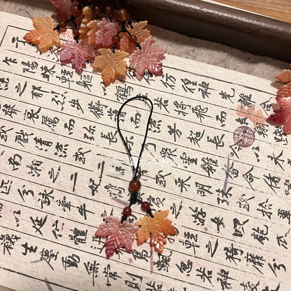 秋天枫叶手机挂件中国风中式挂件包包相机钥匙扣挂坠挂饰百搭简约