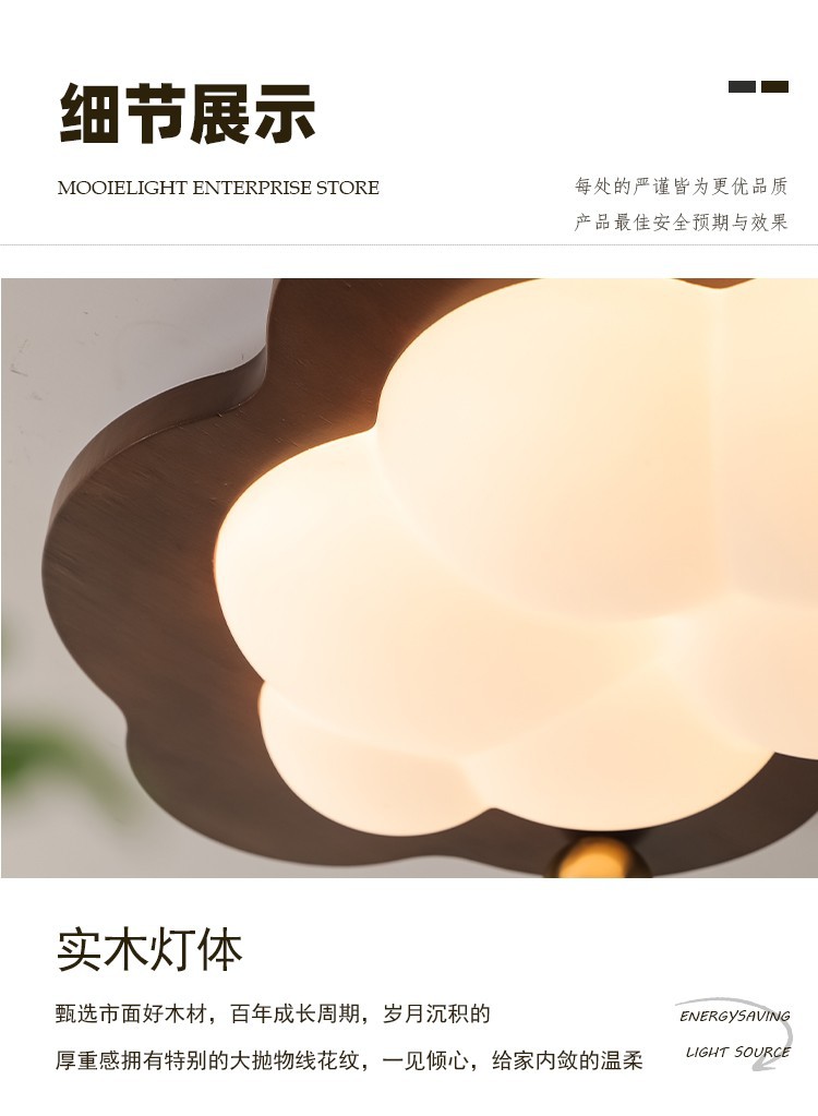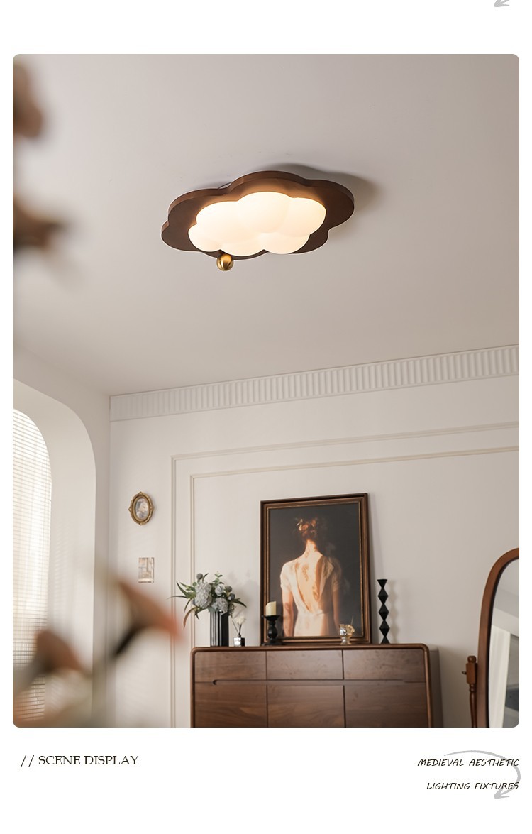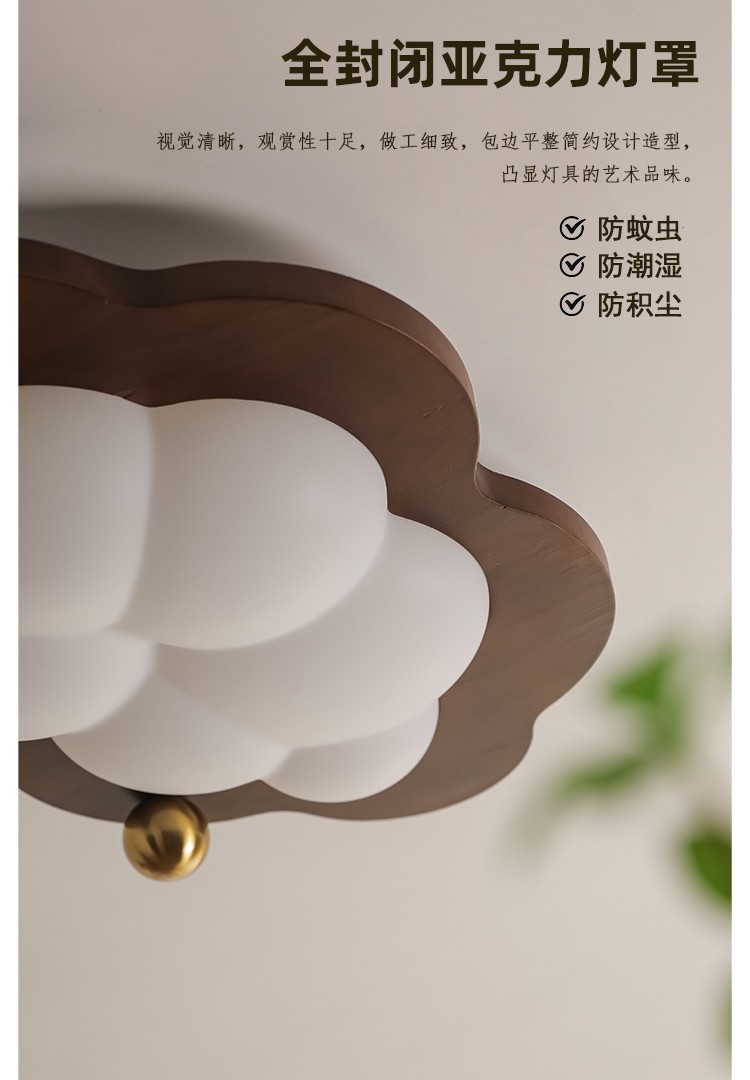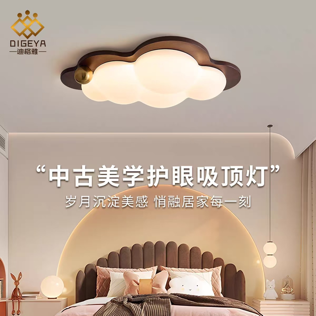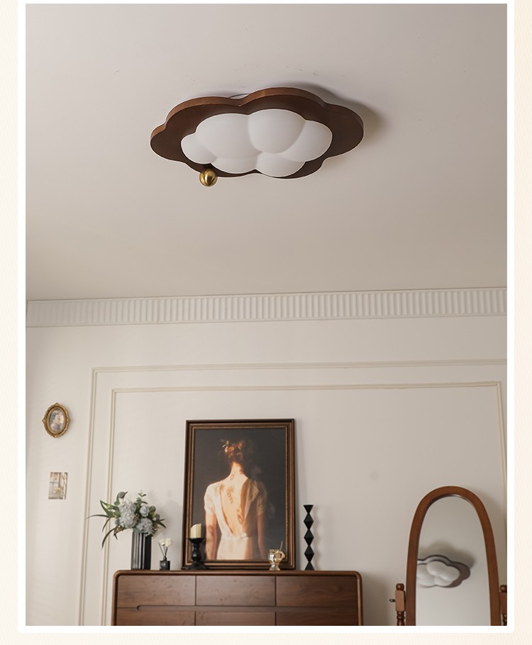 迪格雅中古卧室实木护眼灯具创意云朵儿童房全光谱护眼装饰吸顶灯