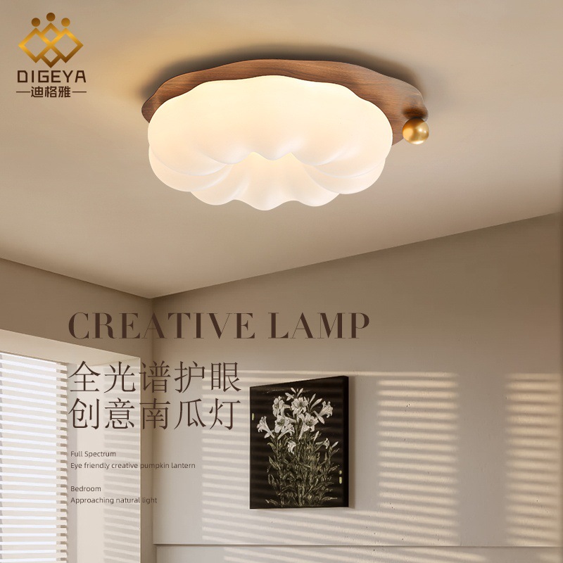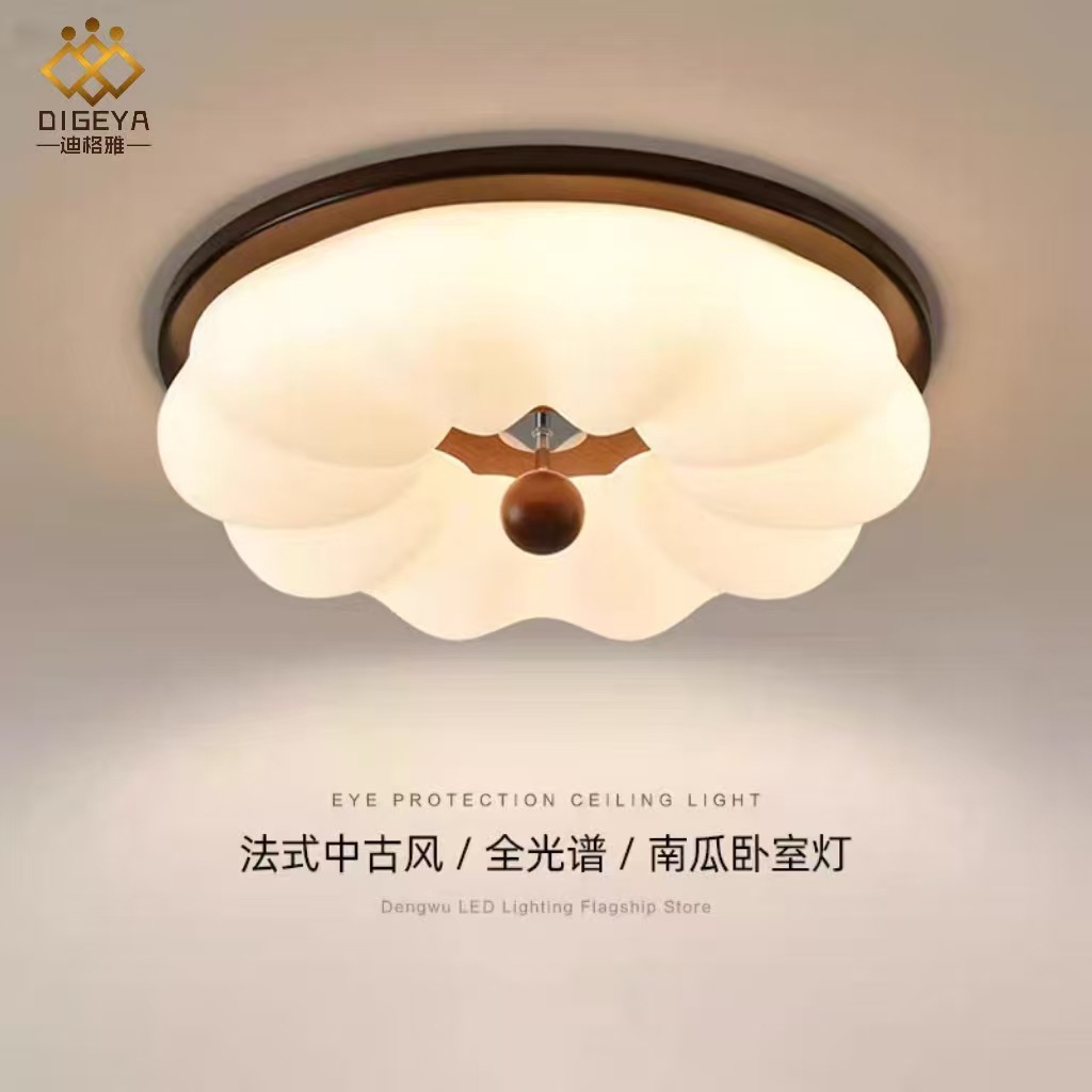迪格雅中古风卧室书房温馨主灯创意奶油风儿童房护眼南瓜吸顶灯具