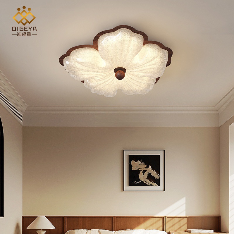 迪格雅原木風日本式暖かいロマンチックな花の天井灯普瑞全スペクトル保護眼子供部屋寝室灯