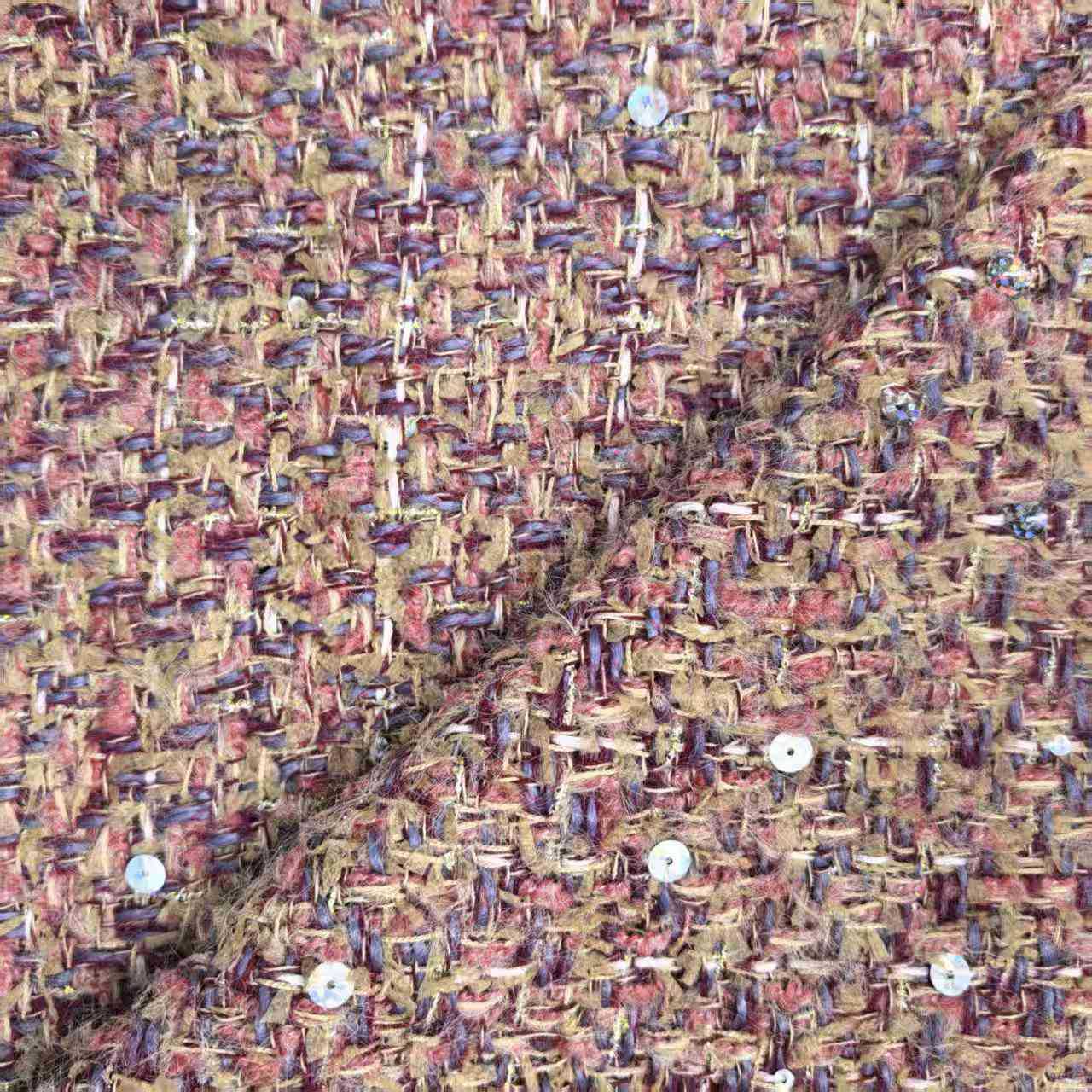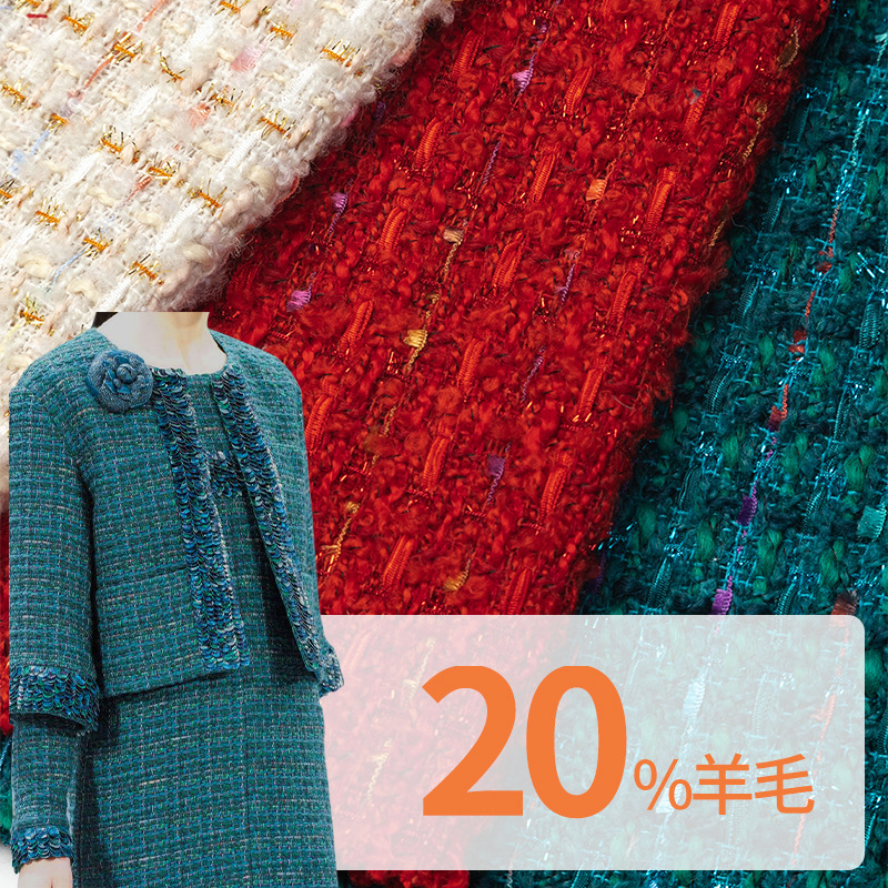 赤い金糸の粗紡小香風粗花生地ウールコートセット生地メーカー直供