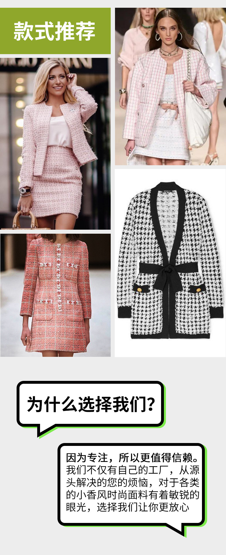 秋冬編み物粗紡小香風粗花生地両面格子秀場同一スーツワンピース生地