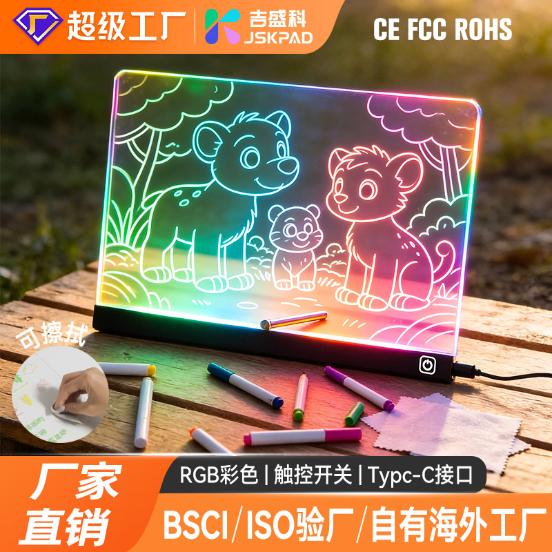 会发光的LED画板儿童涂鸦RGB可擦手绘亚克力透明留言板手写临摹