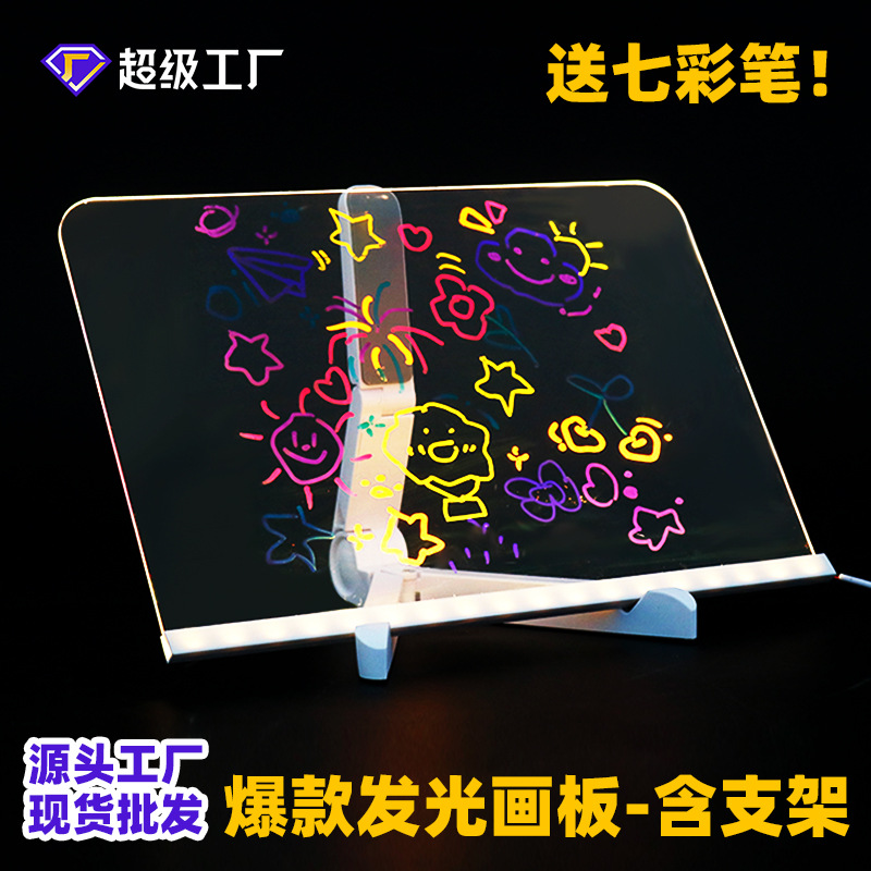 跨境爆款diy儿童发光画板可擦涂鸦透明亚克力荧光板益智绘画玩具