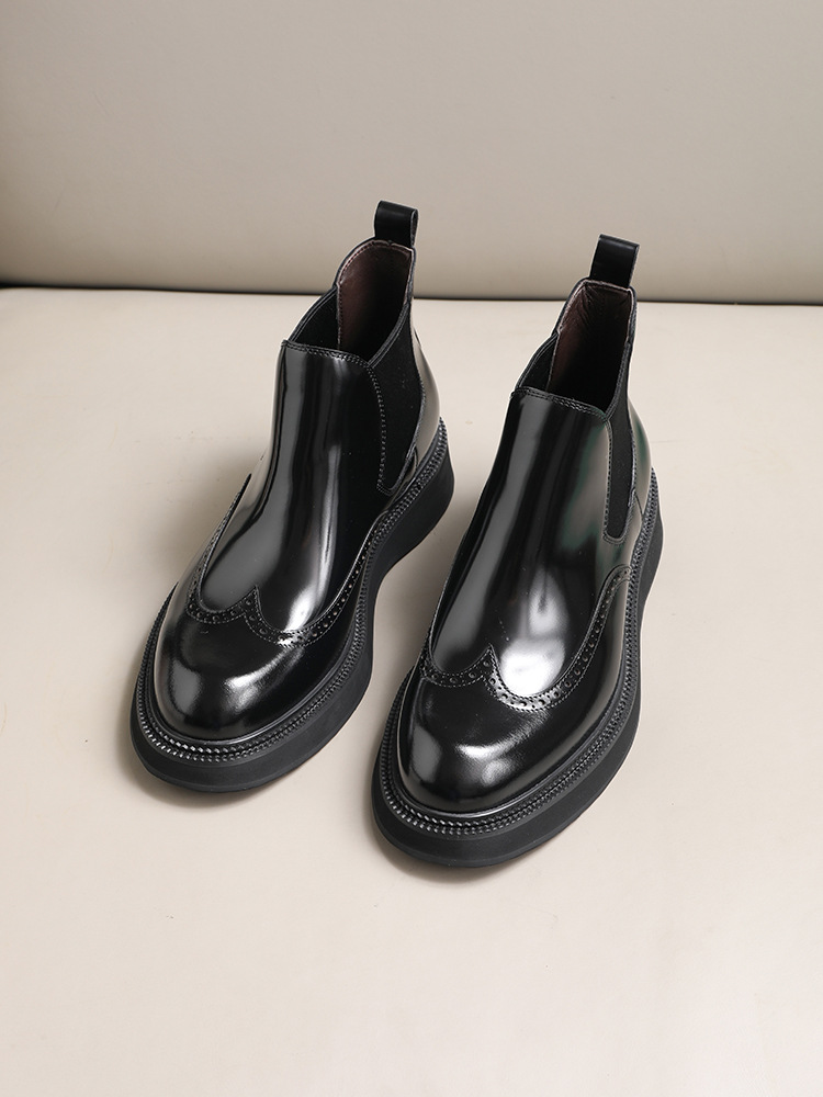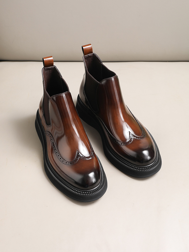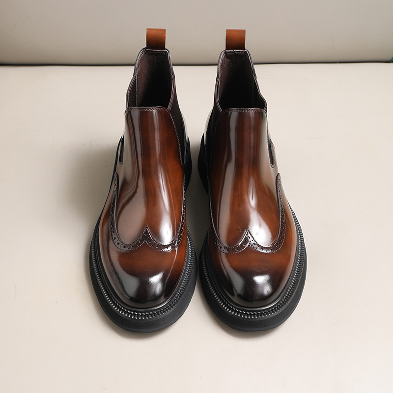 英伦风复古切尔西靴男靴头层牛皮短靴子男士真皮厚底高帮皮鞋