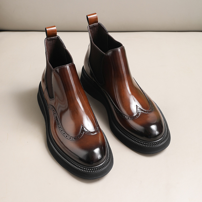 秋冬新品切尔西靴布洛克雕花商务男靴高帮皮鞋男士短靴