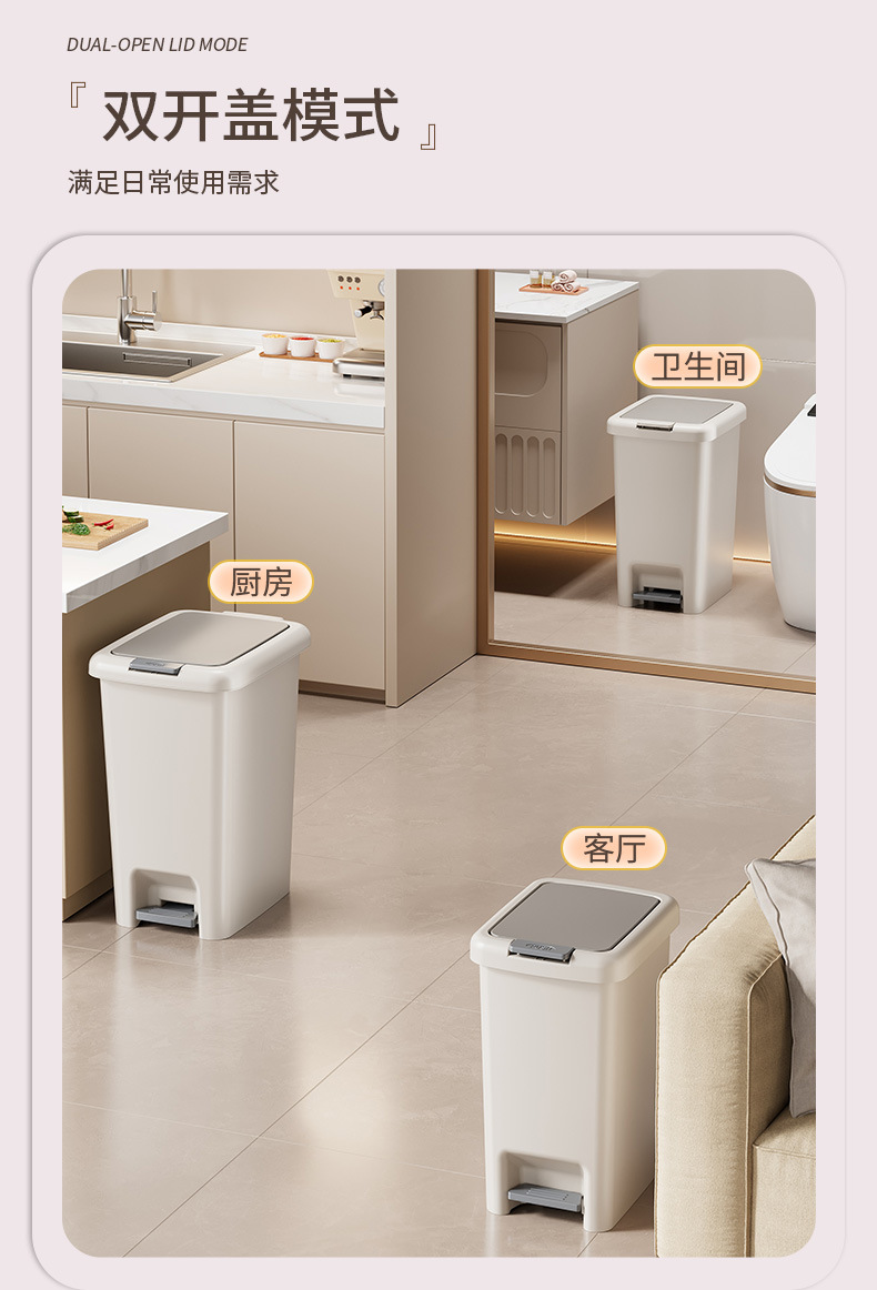 垃圾桶家用脚踏按压双开式大容量厨房带盖厕所客厅卧室卫生间纸篓