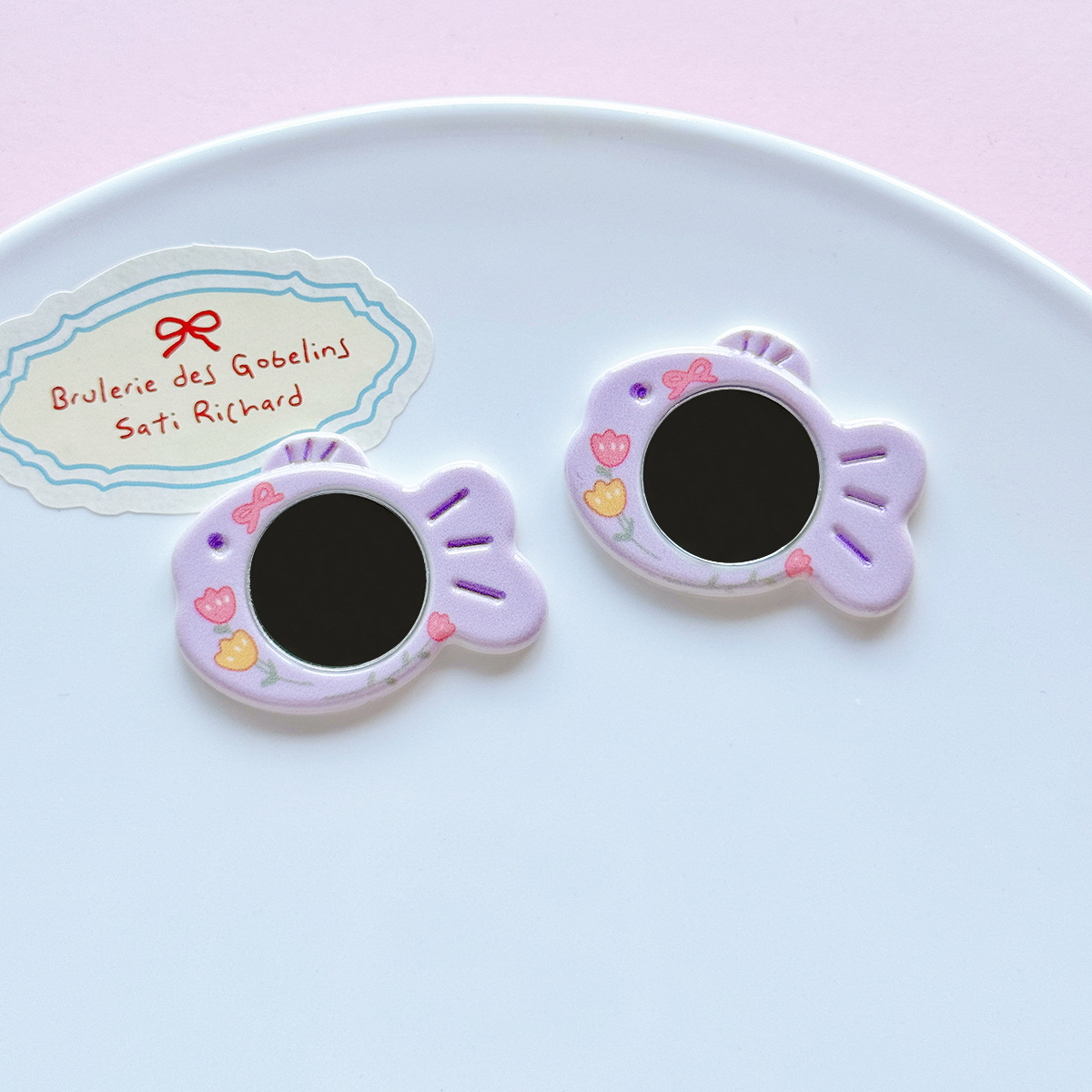 亚克力小镜子小鱼diy饰品手机壳发夹发饰鞋扣耳饰钥匙扣配件批发