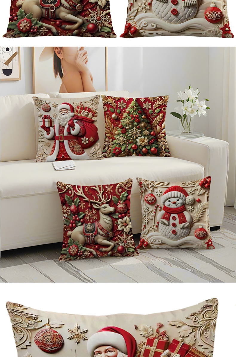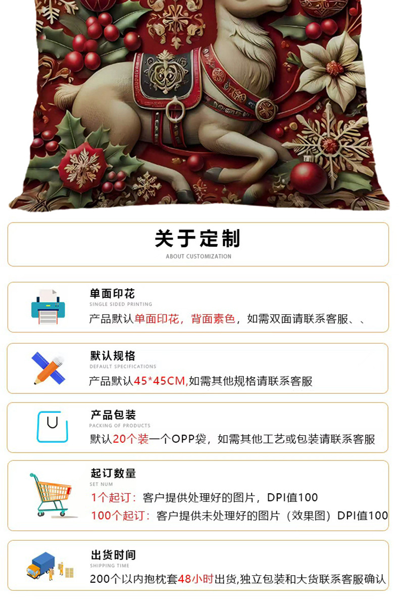 亚马逊temu爆款短毛绒桃皮绒印花圣诞枕套客厅沙发靠枕圣诞装饰品