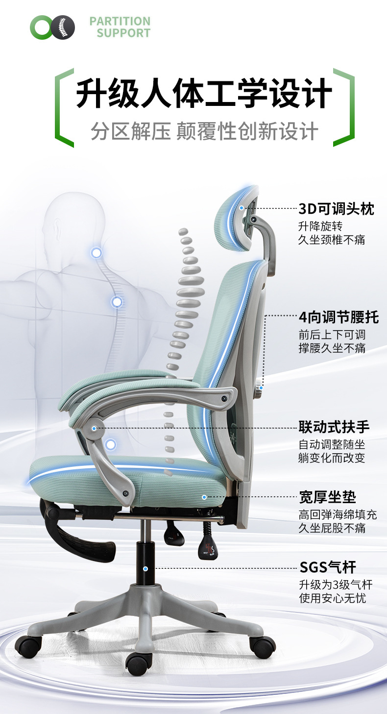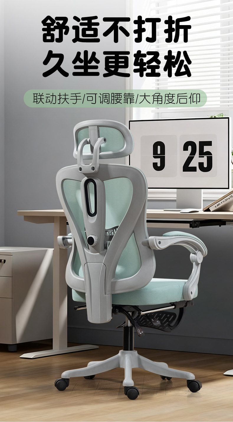 电脑椅家用办公座椅人体工学椅护腰学习椅舒适久坐电竞椅可躺椅子