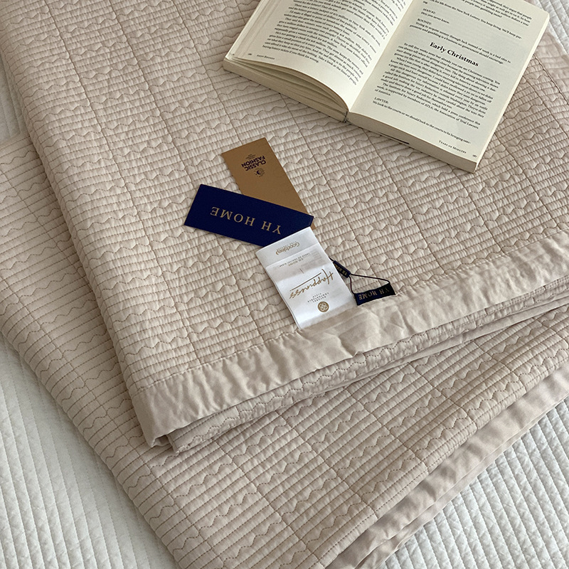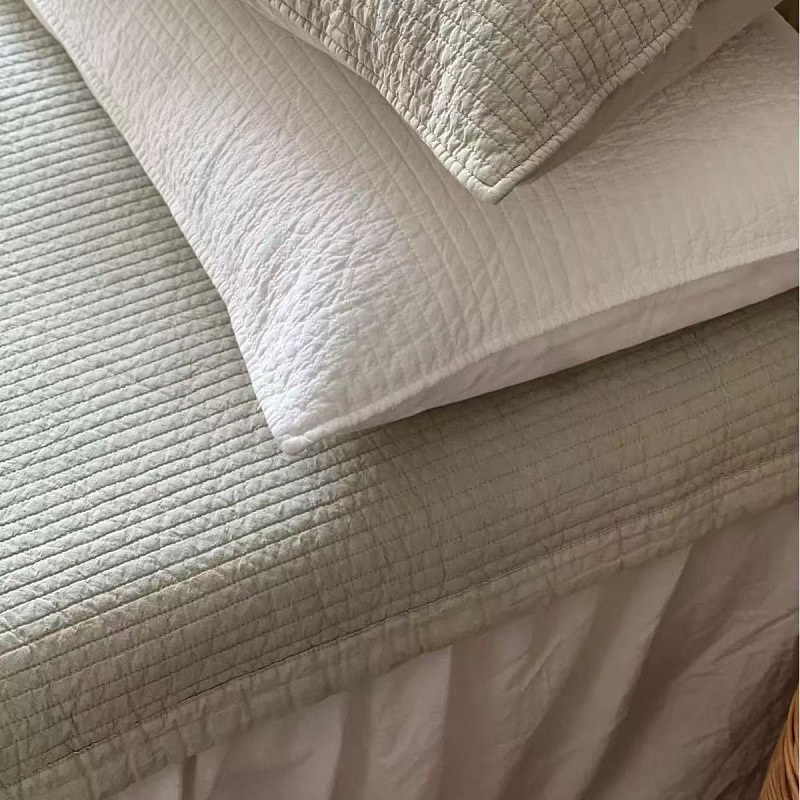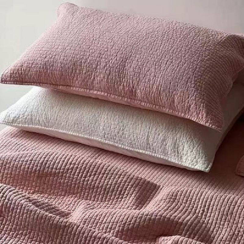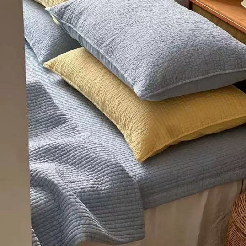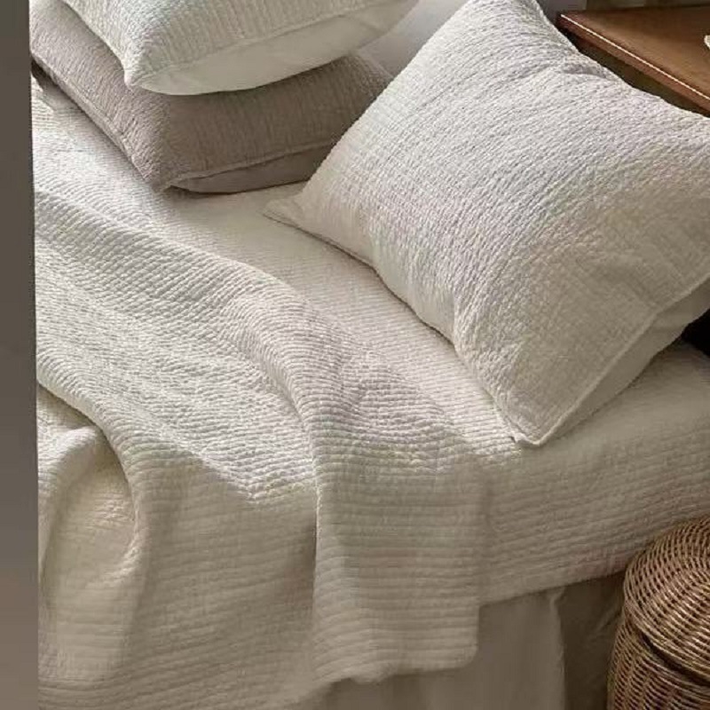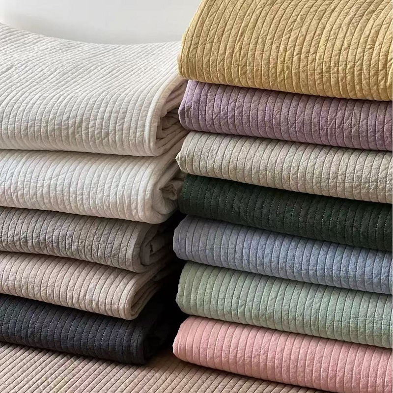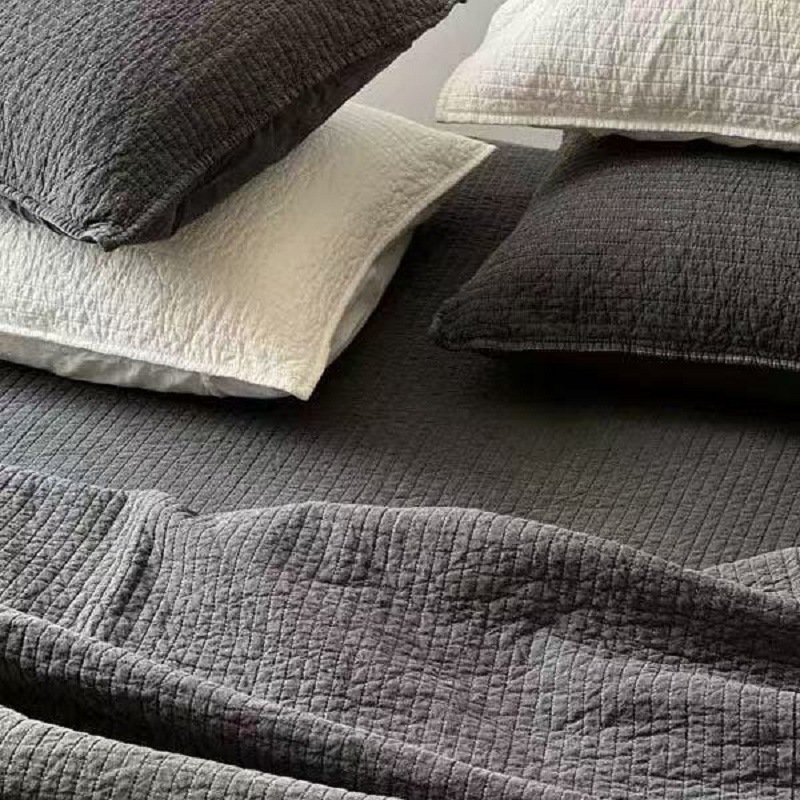 韩国砂洗直条密道绗缝床盖三件套一体染色高级感外贸榻榻米炕盖