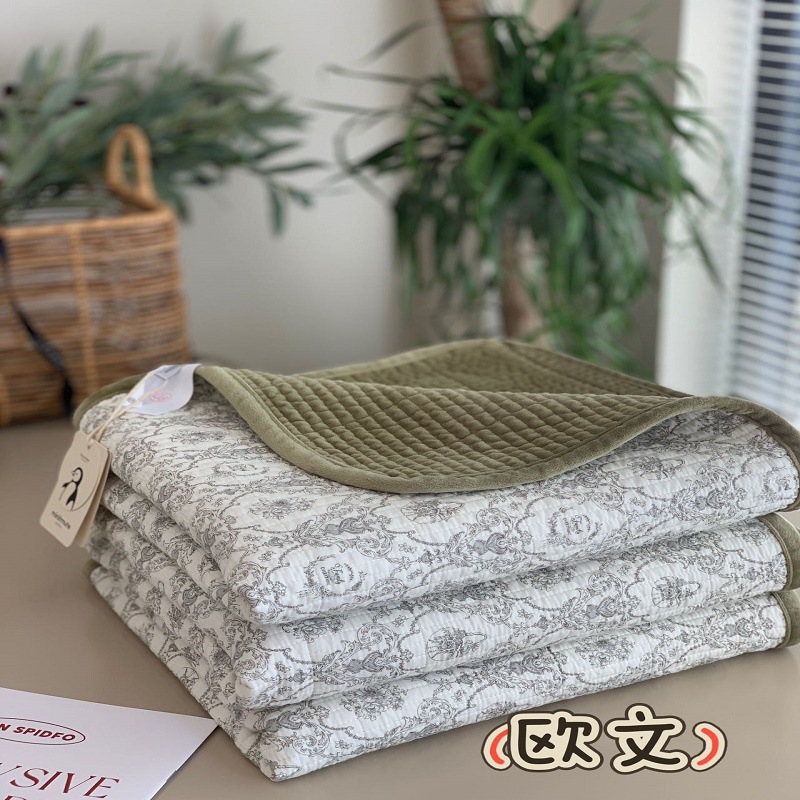 韩式秋冬款一面棉一面宝宝绒绗缝夹棉床盖榻榻米炕盖床单双面可用