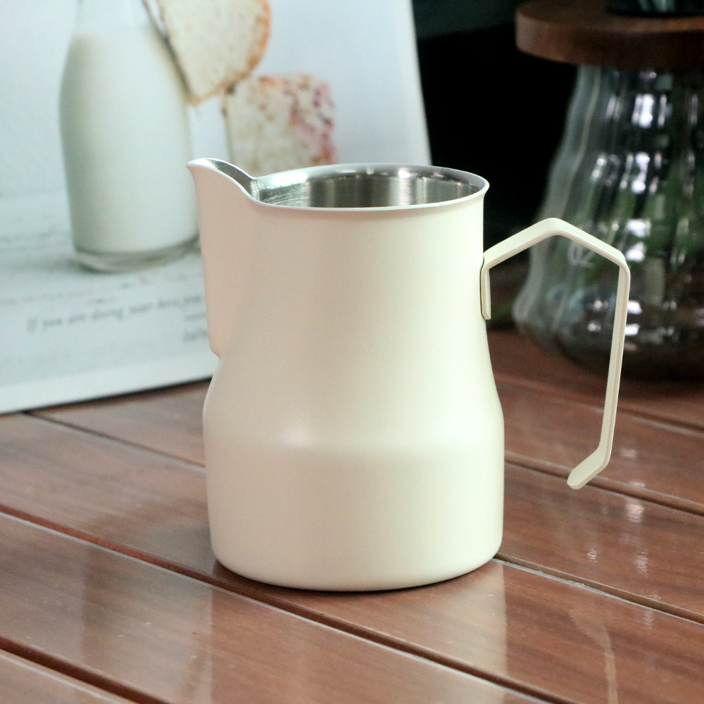 304ステンレスのイタリア式の花引きの杯のテフロンのコーヒーの花引きのかめの大きい腹はミルクの泡器のイタリア式の花引きのかめを打ちます