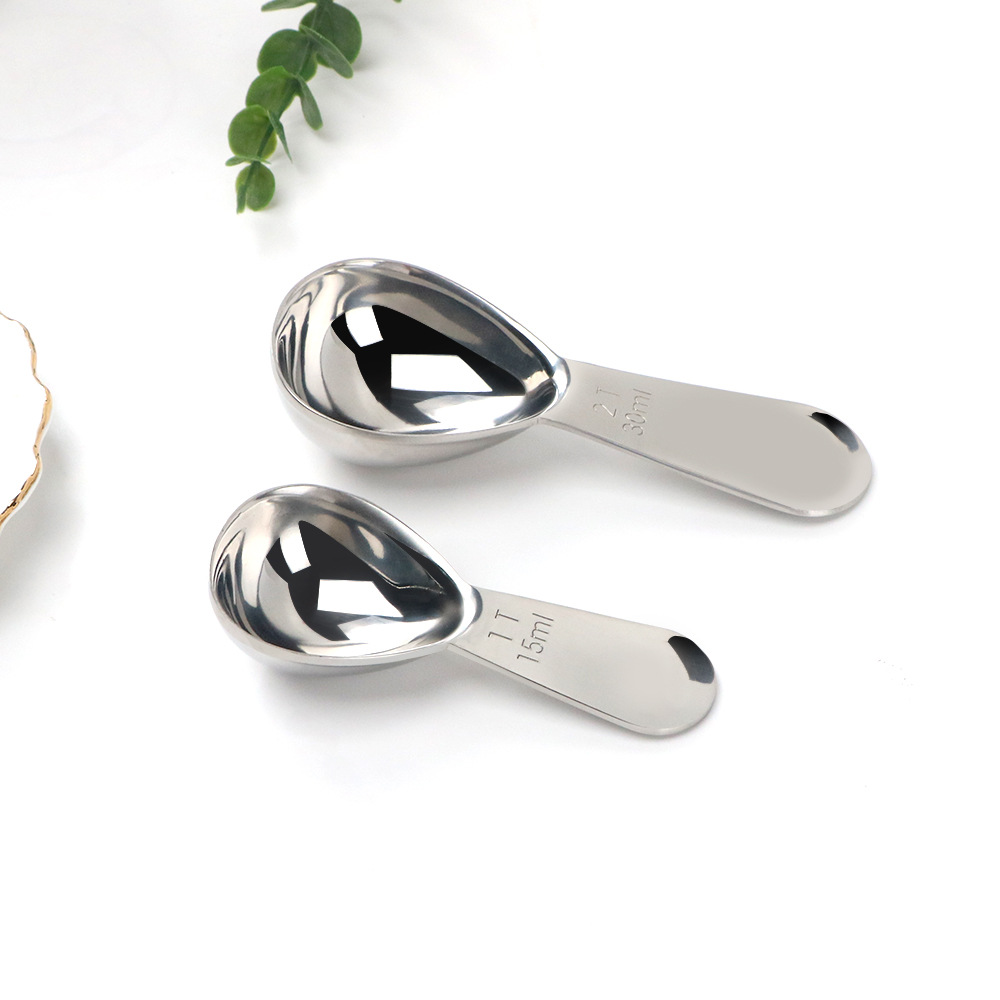 コーヒー計量スプーン15ml 30mlスケール付きステンレス304厚さ2点セットコーヒー豆計量スプーン測定スプーンセット
