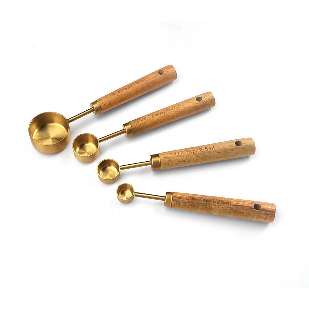 ステンレス計量カップステンレス計量スプーン4点セット焙煎用具目盛り付き計量カップアカシア木柄計量カップ計量スプーン