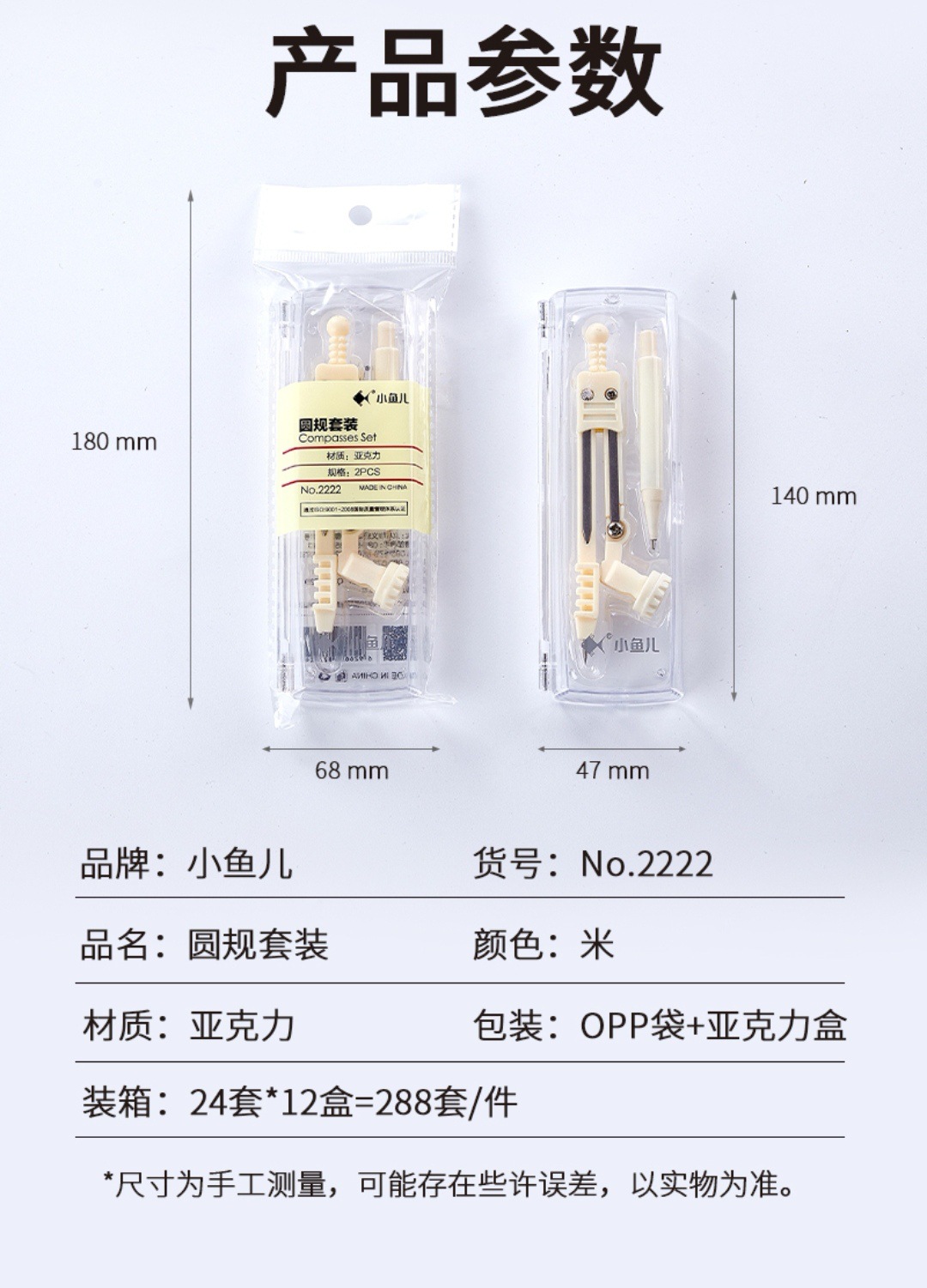 小鱼儿2527学生套规多功能绘图高颜值金属简约圆规套装2件套批发