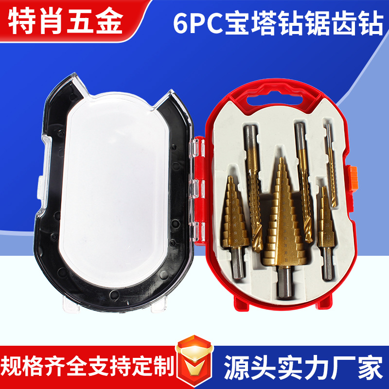 パゴダドリル、鋸歯状ドリルセット、ハンド電動ドリル、木工穴あけドリル、高速度鋼ストレート溝ステップドリルの6点セット