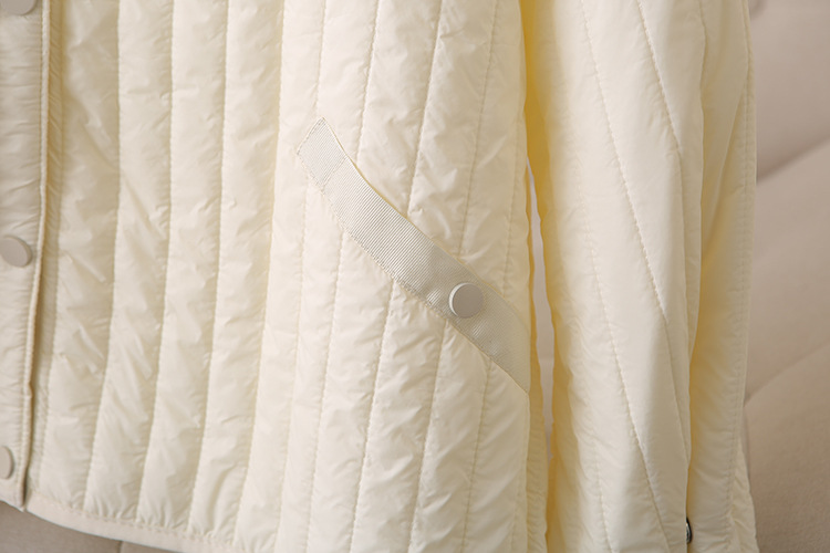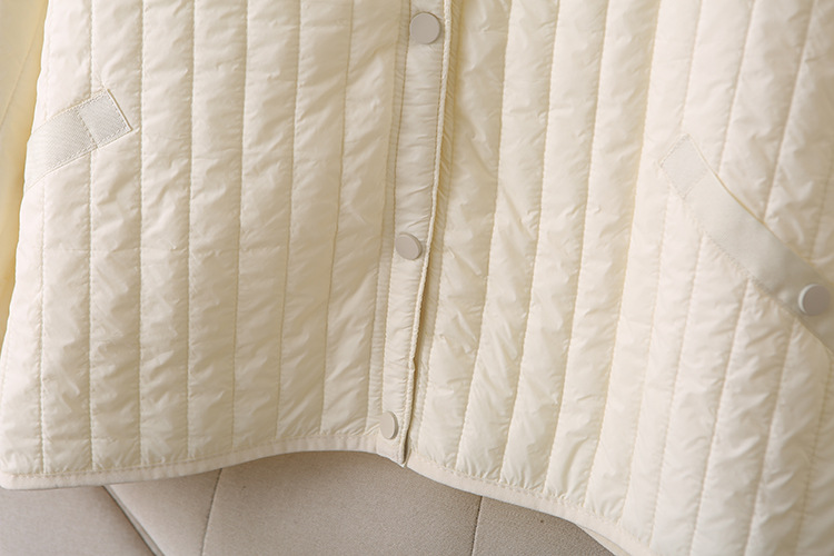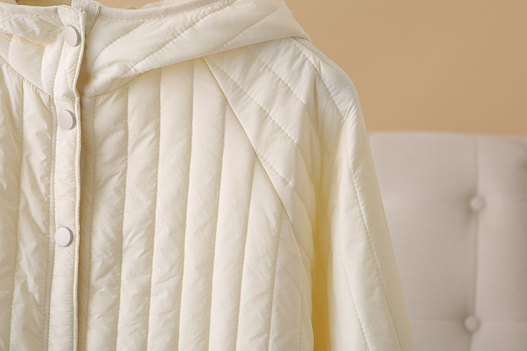2025秋冬轻薄棉服女大码夹棉外套连帽简约竖条纹上衣胖mm棉衣1732