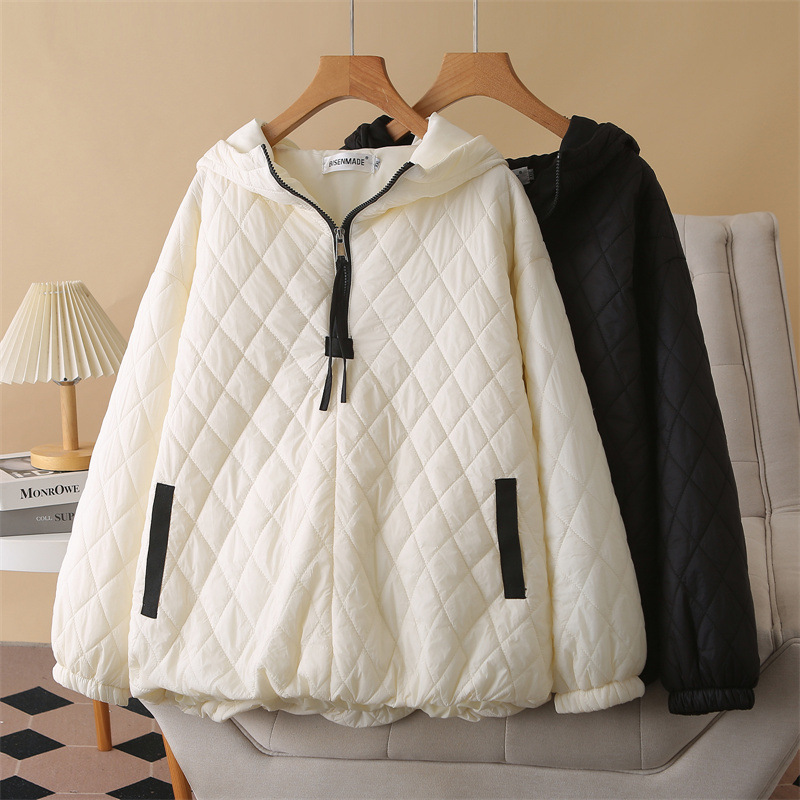 大码棉衣套头长袖女装2025秋冬轻薄棉服连帽收下摆棉上衣1725